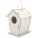 Casita para pájaros de madera natural, cada pieza se sirve desmontada y en bolsa individual.