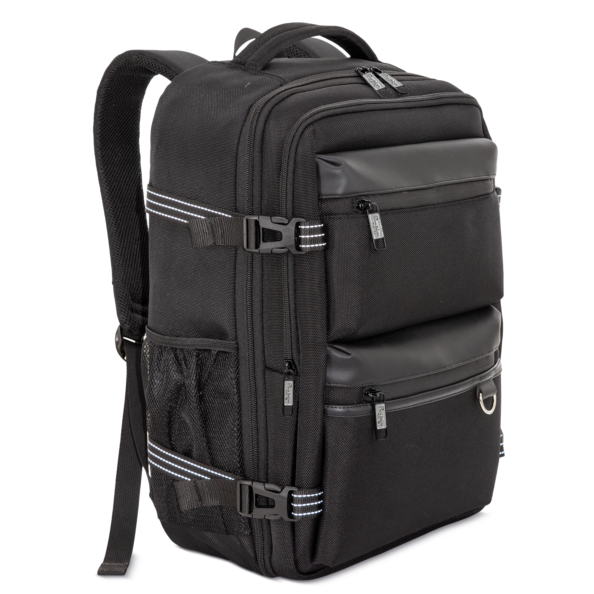 Incorpora un bolsillo trasero oculto antirrobo, su interior es amplio con compartimento acolchado para portátil (hasta 17"), bolsillos frontales de acceso rápido y espacio para botella en ambos laterales.
