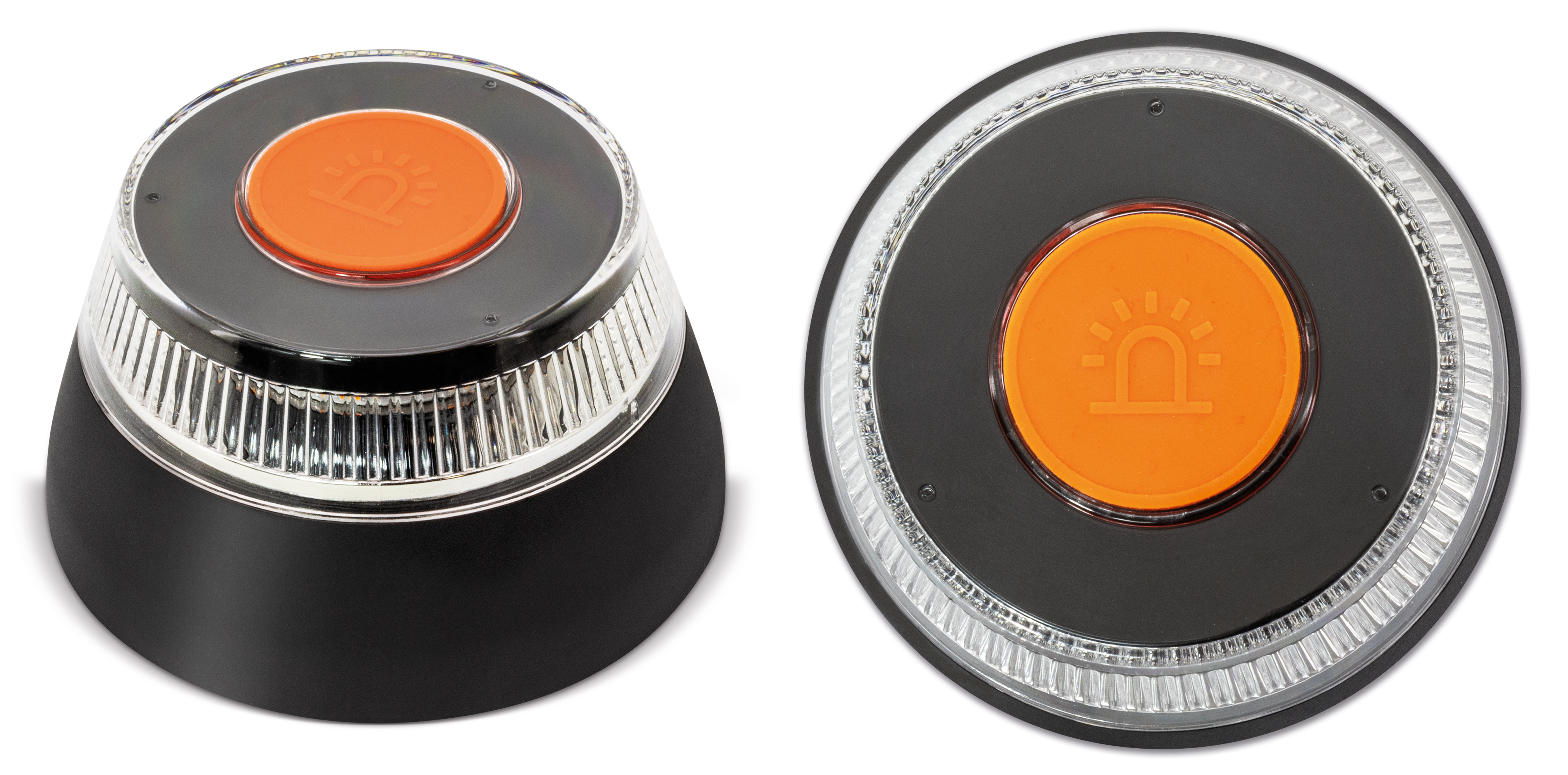 Luz de emergencia V16 geolocalizada, datos incluidos hasta 01/2038. Base magnética, impermeable IP54.Autonomía máx.. 2.5 horas Visión total 360º hasta 1km.