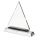 Trofeo de cristal en forma triangular, montado sobre una sólida base rectangular.