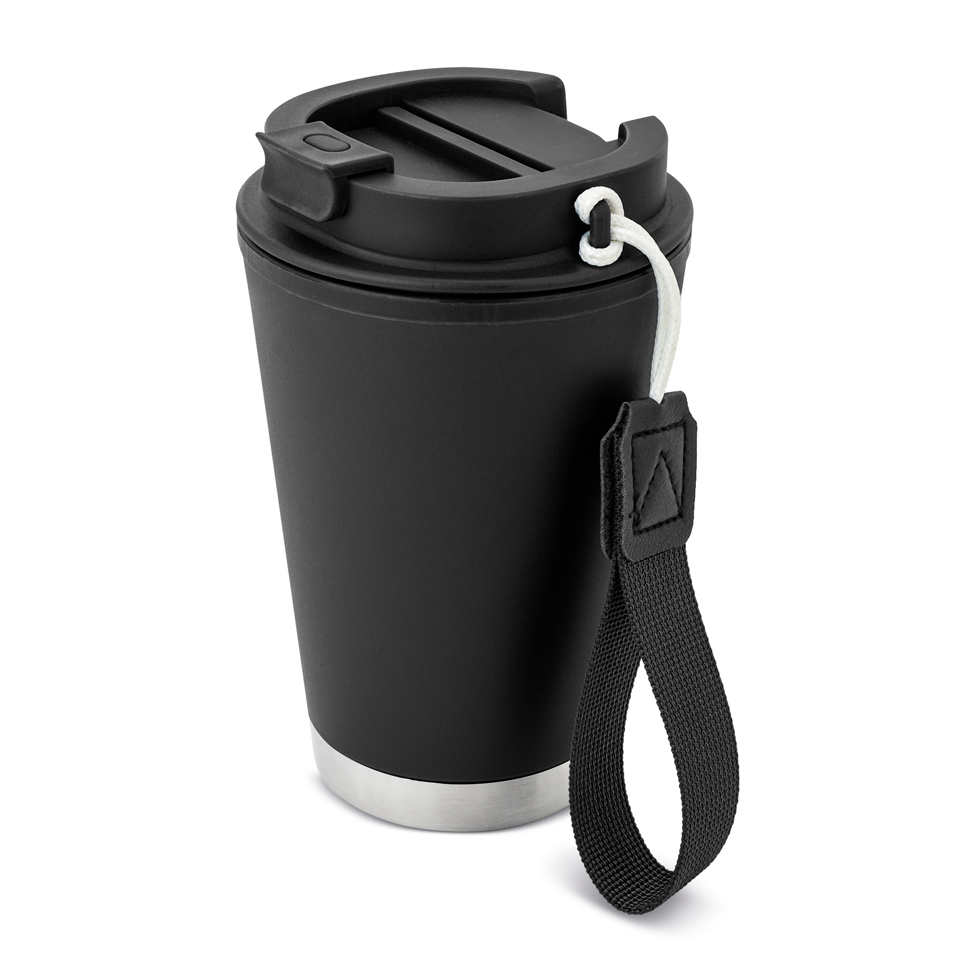 Diseño moderno y acabado mate, con tapa de rosca y cierre hermético. Base metálica para mantener la temperatura por más tiempo. Incluye una práctica cinta de transporte ideal para el día a día.