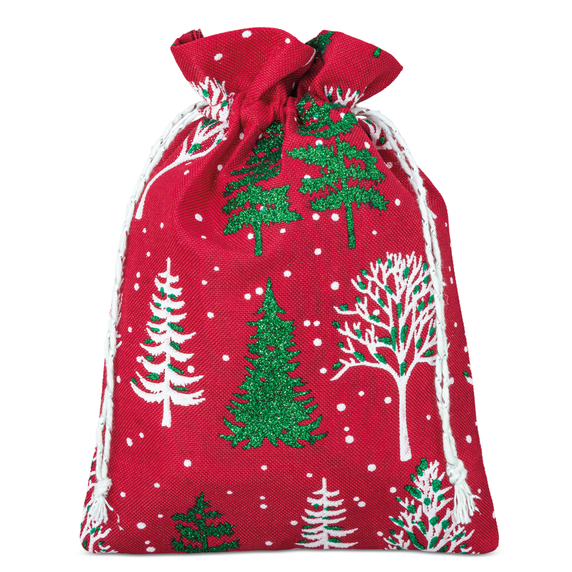 Bolsa con motivos navideños, disponible en dos tamaños ref. 10901 medida 10x14.5 cm y ref. 10902 medida 13X18 cm.