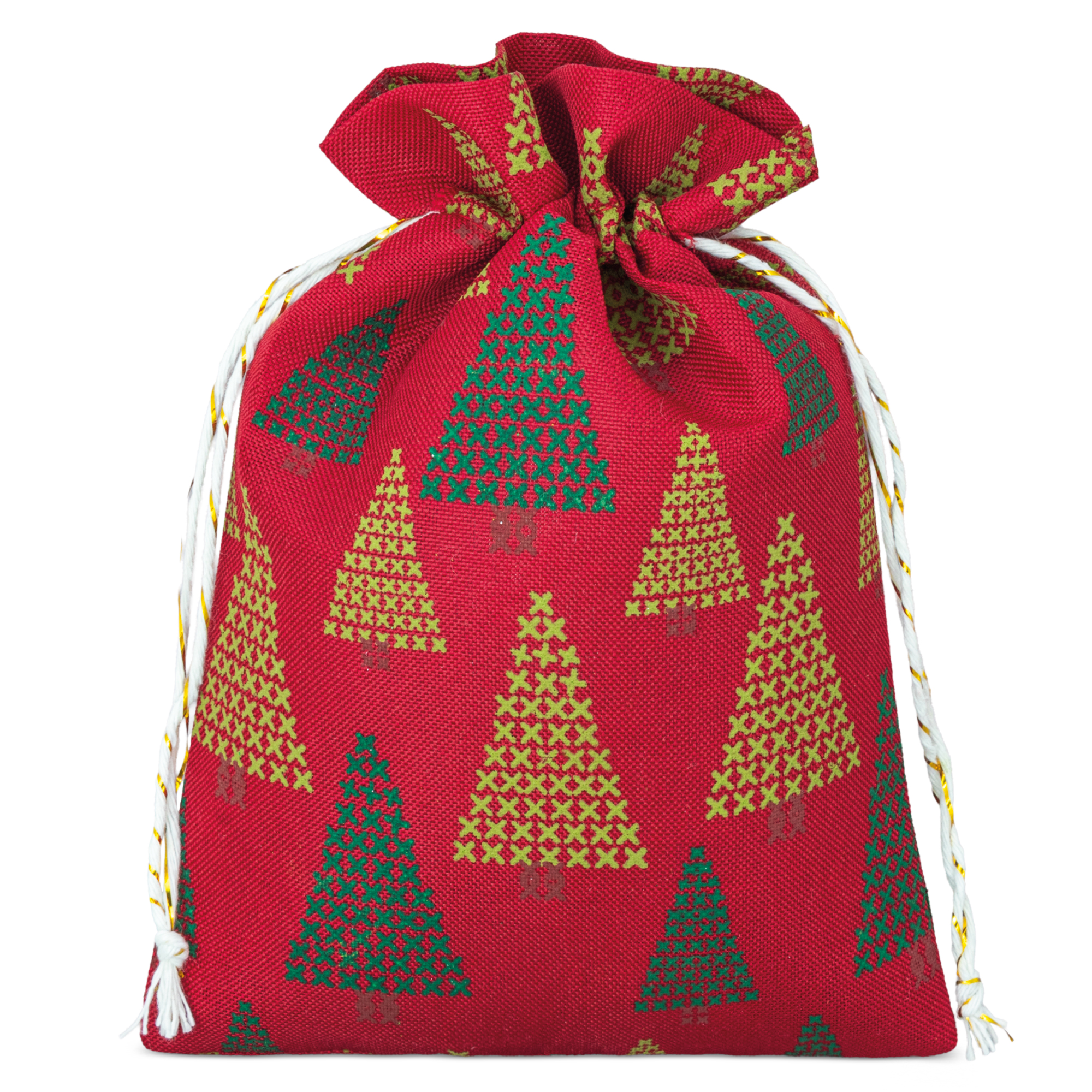 Bolsa con motivos navideños, disponible en dos tamaños ref. 10903 medida 10x14 cm y ref. 10904 medida 13.5X18 cm.