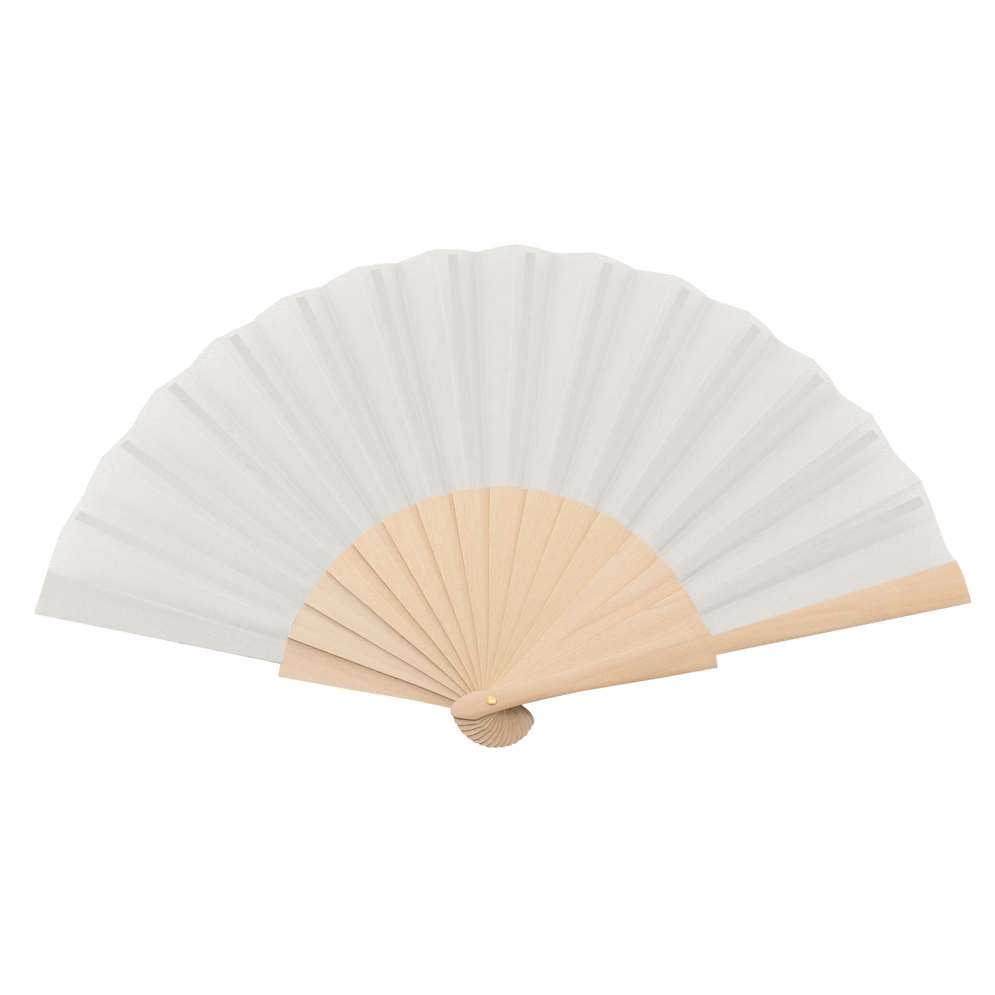 Cada abanico presentado en una caja de cartón de color plateado.