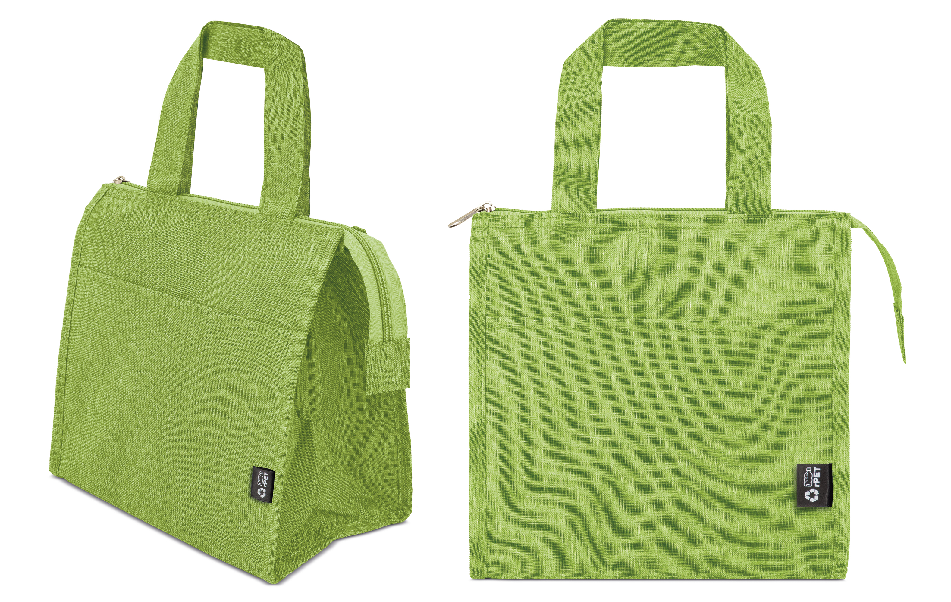 Bolsa nevera ecológica realizada en Rpet, interior aluminio foam aislante.