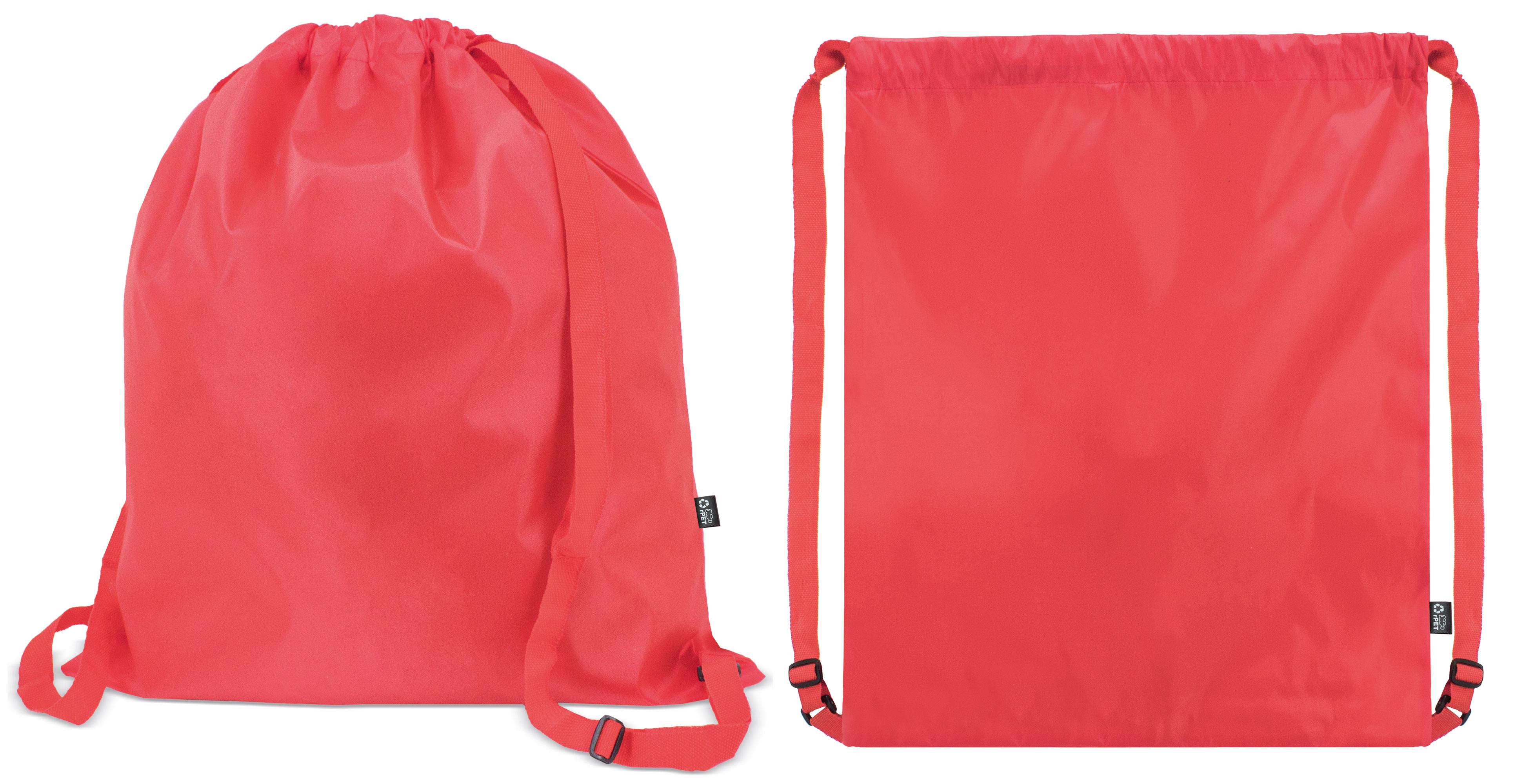 Bolsa mochila realizada en material reciclado (RPET), con dobles cintas ajustables "Confort Plus", ahora más anchas y cómodas.