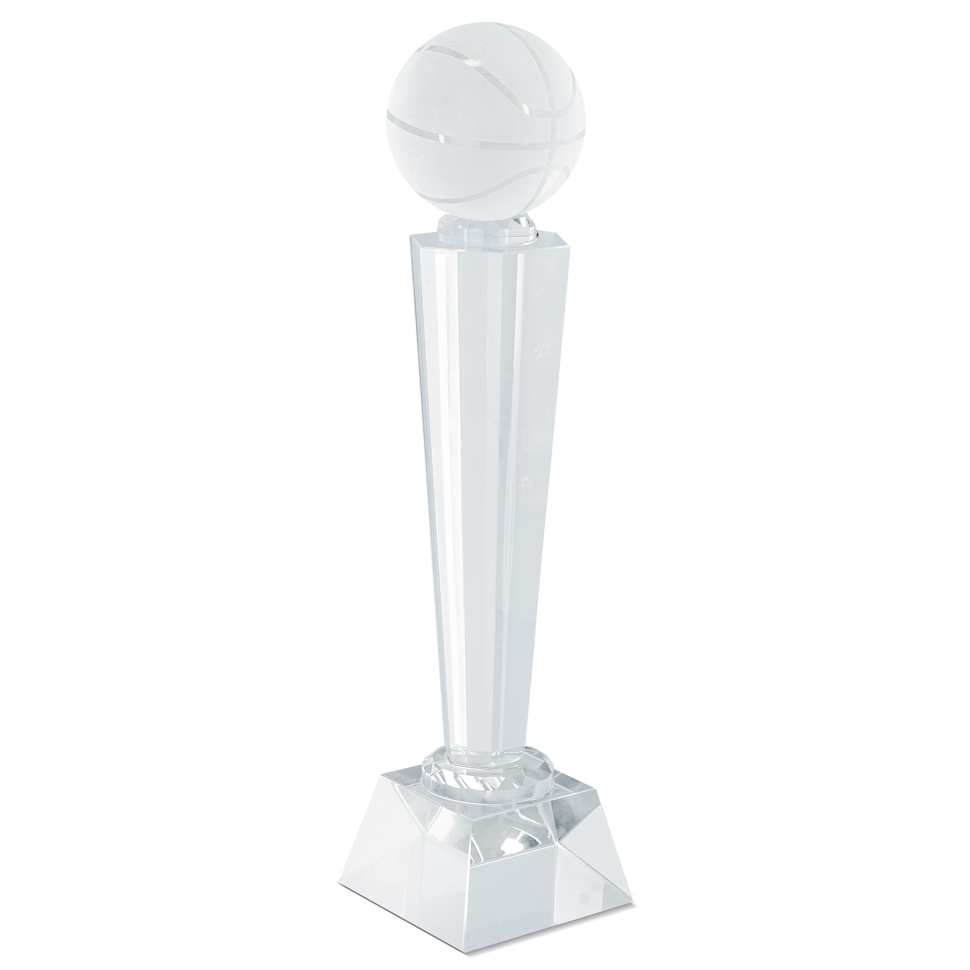 Trofeos de cristal deportivos disponible en varios modelos; pelota de tenis (ref. 10841), balón de fútbol (ref. 10838), pelota de golf (ref. 10840) y balón de baloncesto (ref. 10839)