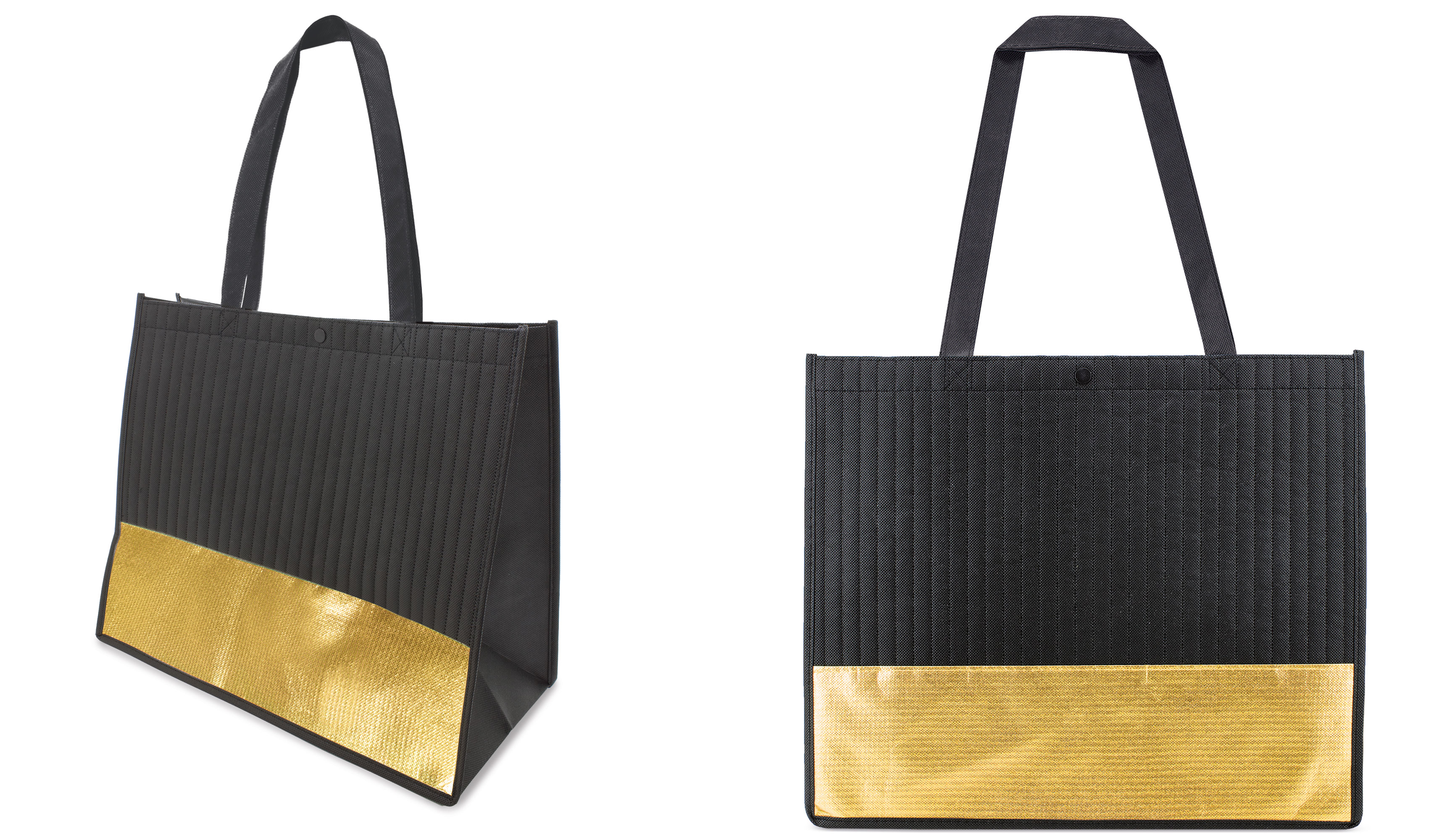 Además, tiene un aplique en non woven metalizado que dota a la bolsa de un toque elegante, sofisticado y moderno que resaltará su publicidad.