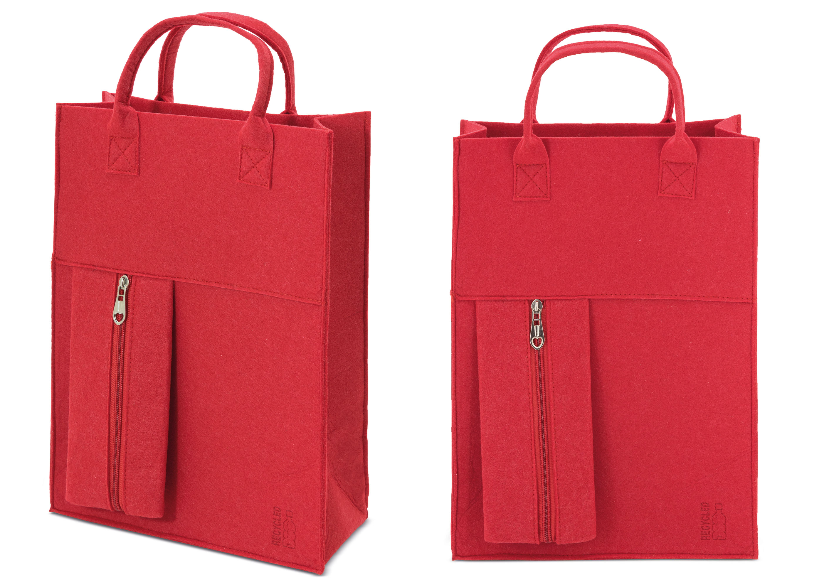 Bolsa fabricada en fieltro RPET, con asas cortas.