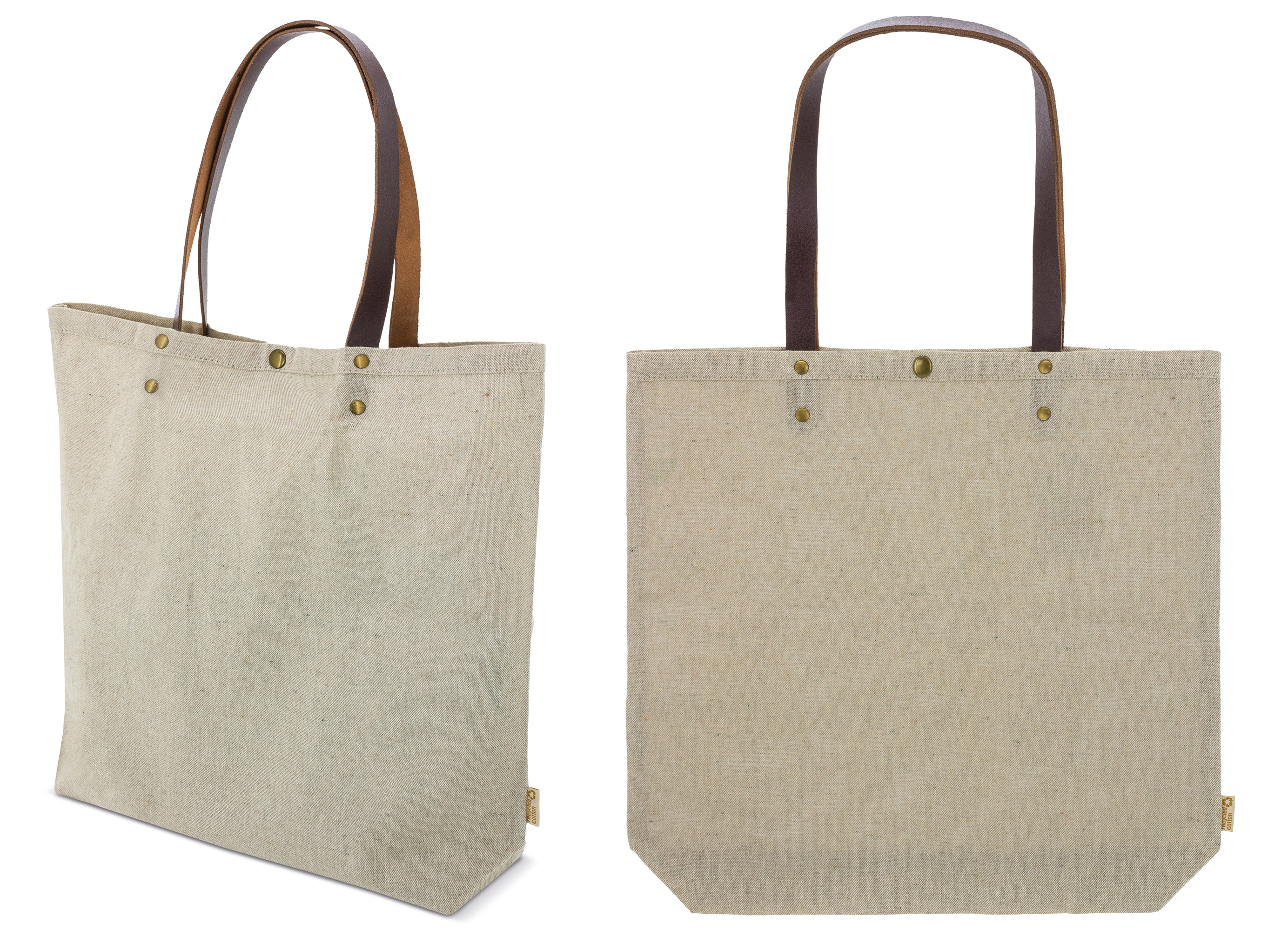 : Algodón canvas reciclado 200 grs/m2 y asas de piel |