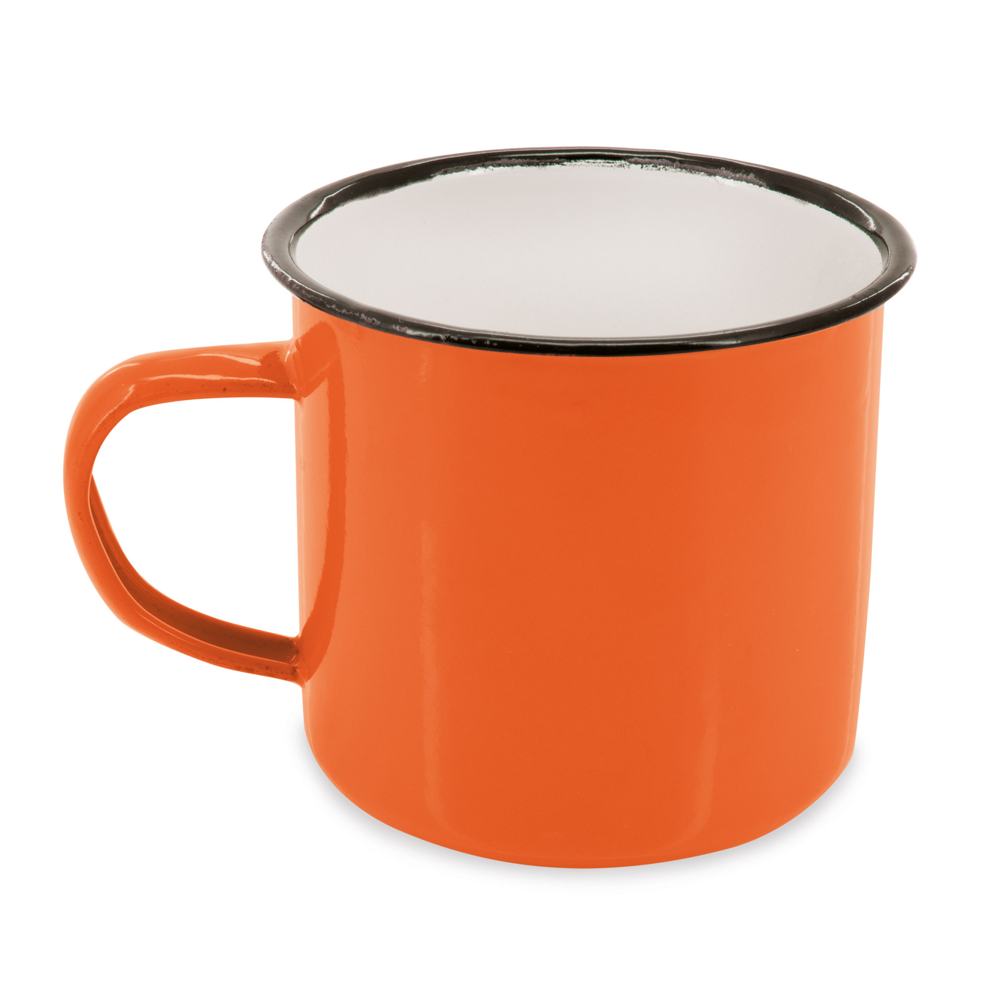 Taza metálica de diseño retro con irregularidades que asemejan las tazas de nuestros abuelos.
