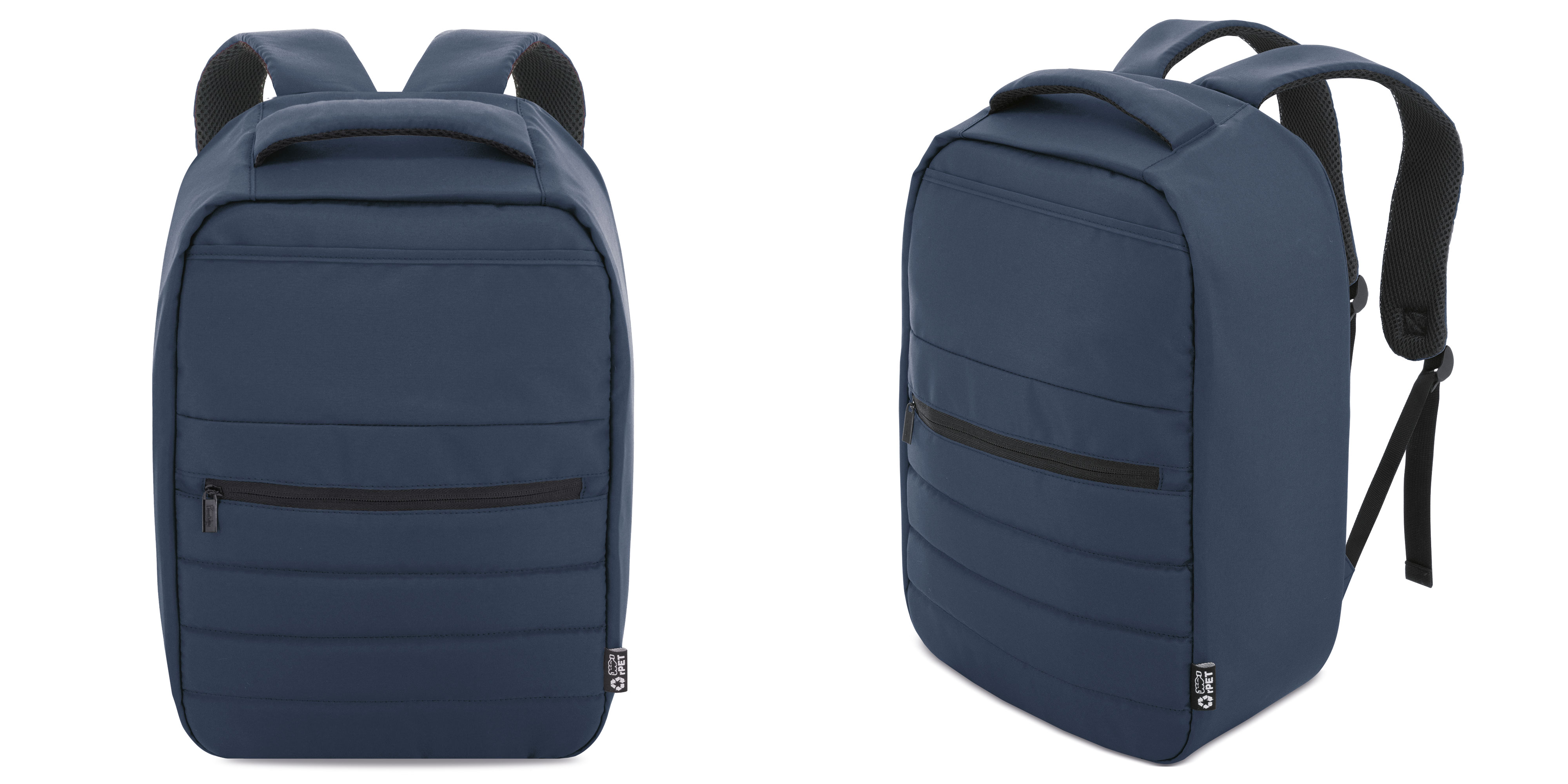 Mochila realizada en material rpet, con interior y tirantes acolchados.