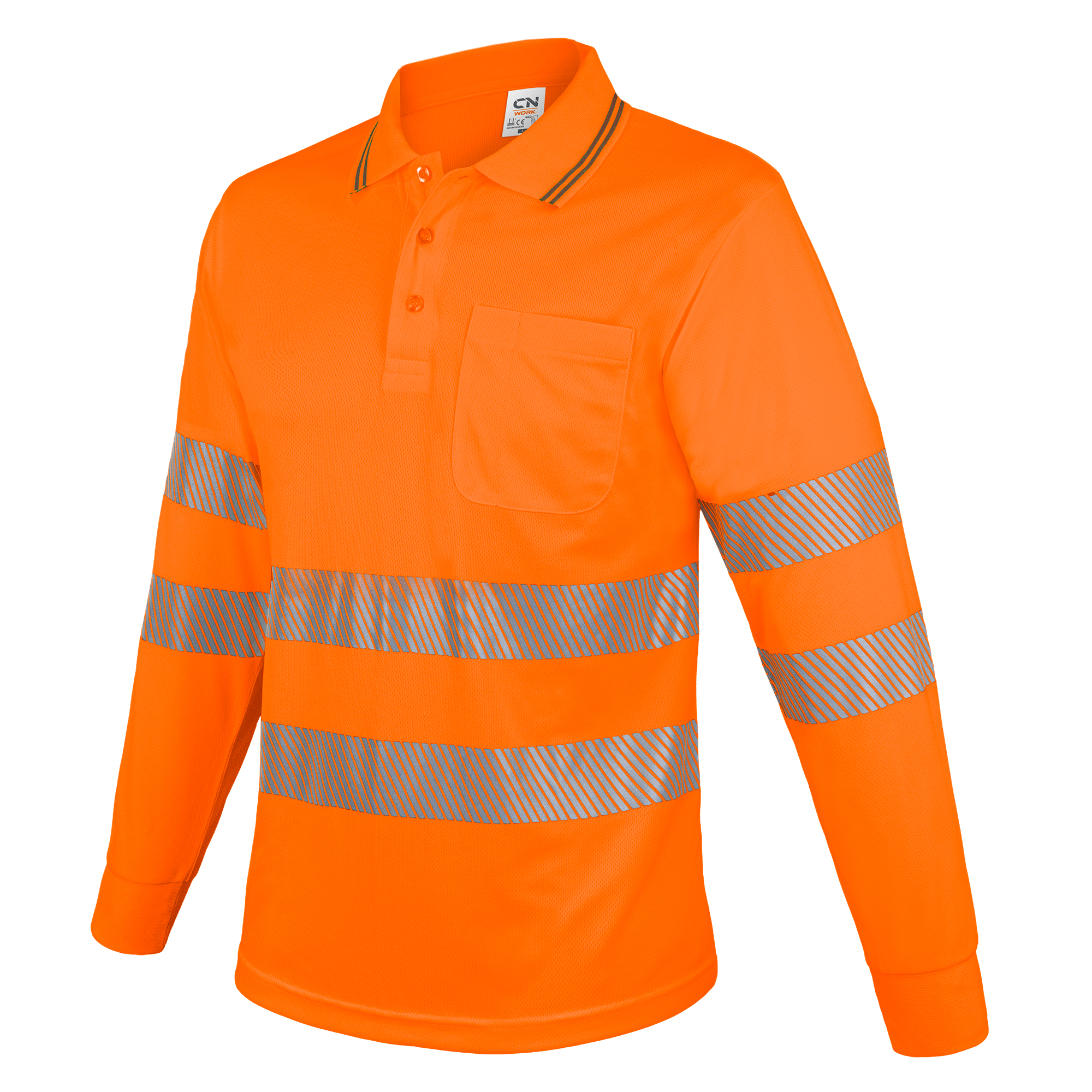 Polo manga larga con bandas reflectantes realizadas 100% en poliéster, con una gran variedad de colores.