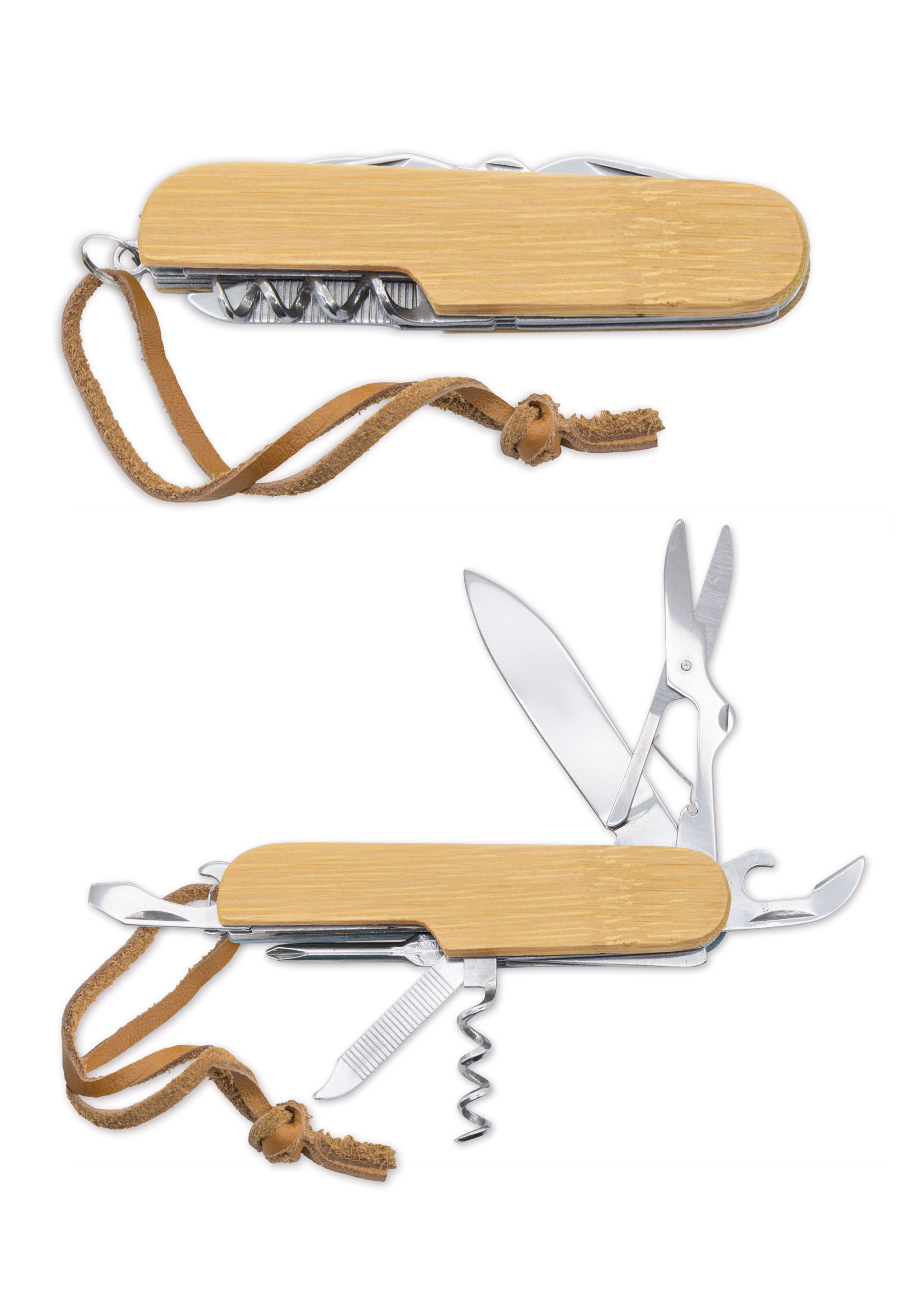 7 funciones; Navaja, tijera, dos abridores, lima, sacacorchos y destornillador