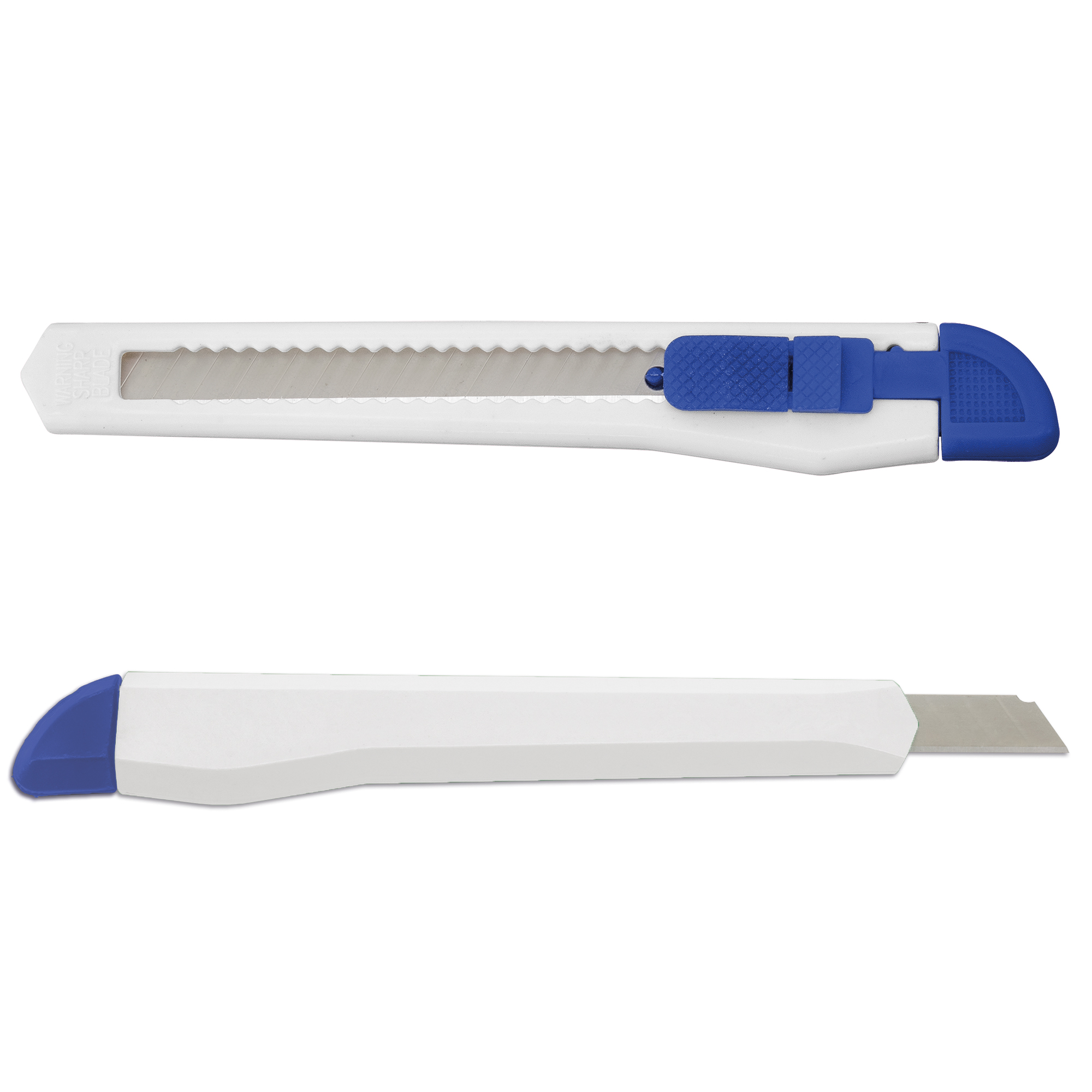 Cutter con mango realizado en abs y cuchilla de acero, cada pieza presentada en bolsa individual