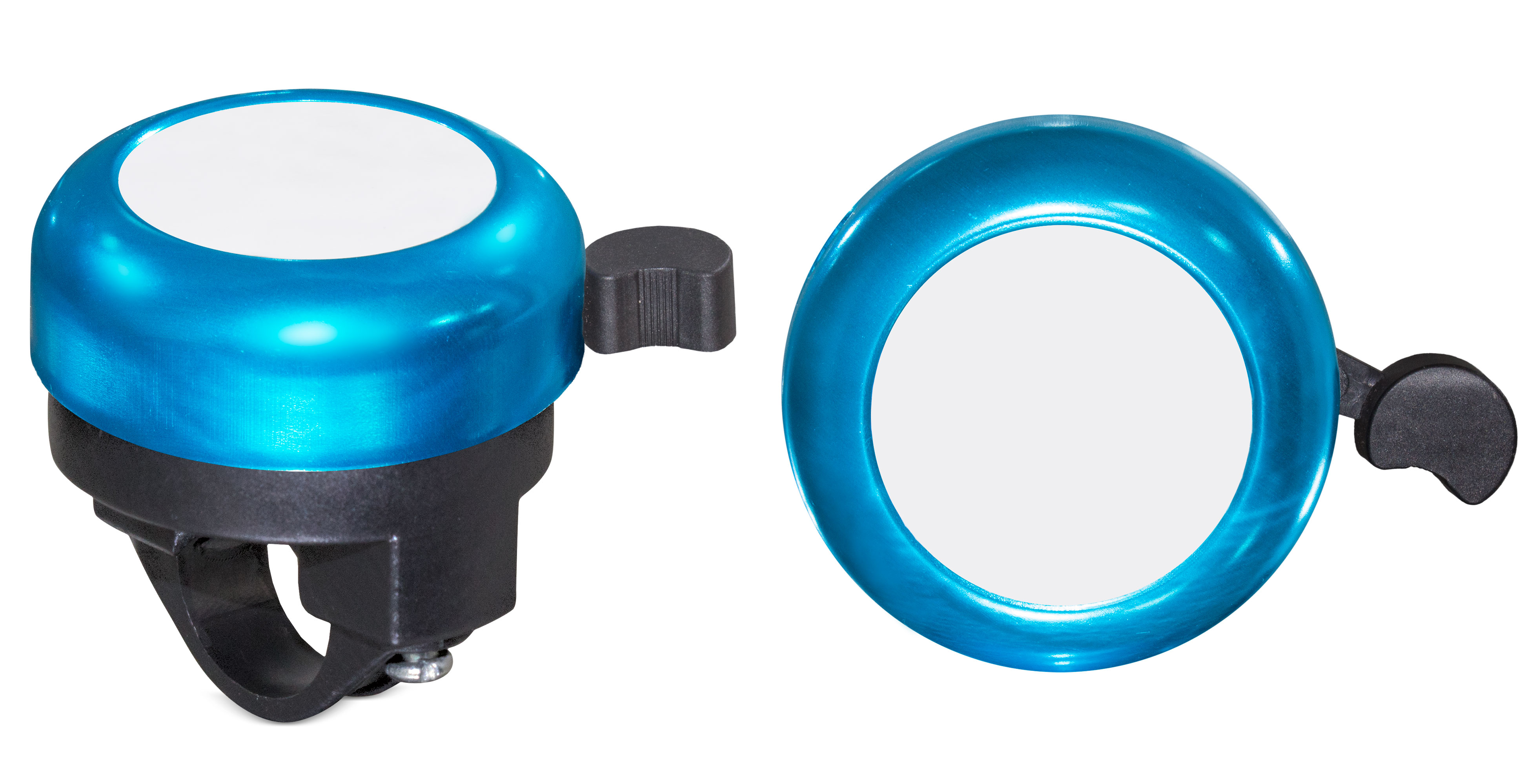 Timbre para bicicleta con carcasa metálica disponible en varios colores.