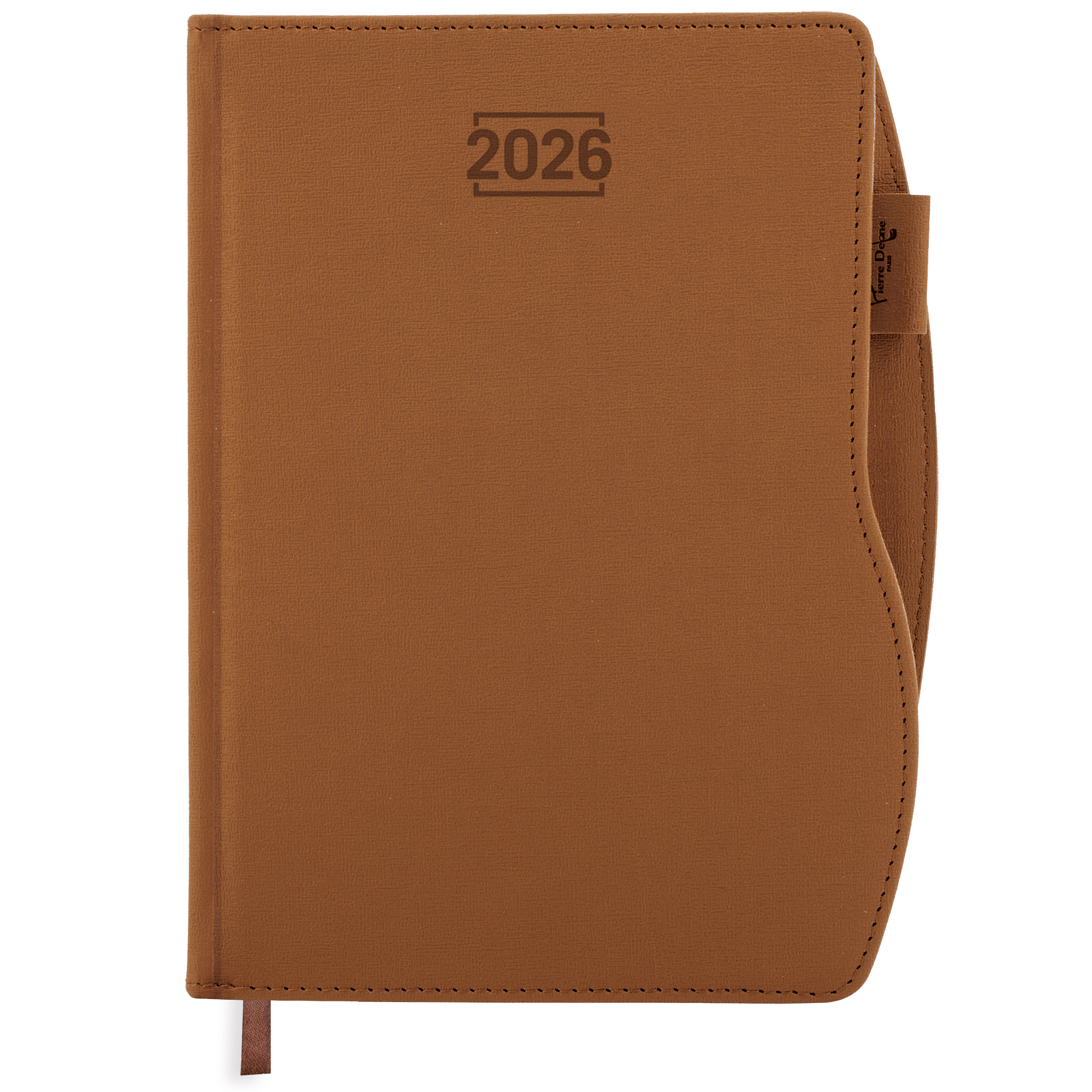 Agenda día página de originales cubiertas rígidas de polipiel, ideal para marcar en la técnica de termo grabado, dando un resultado excelente y de gran calidad.
