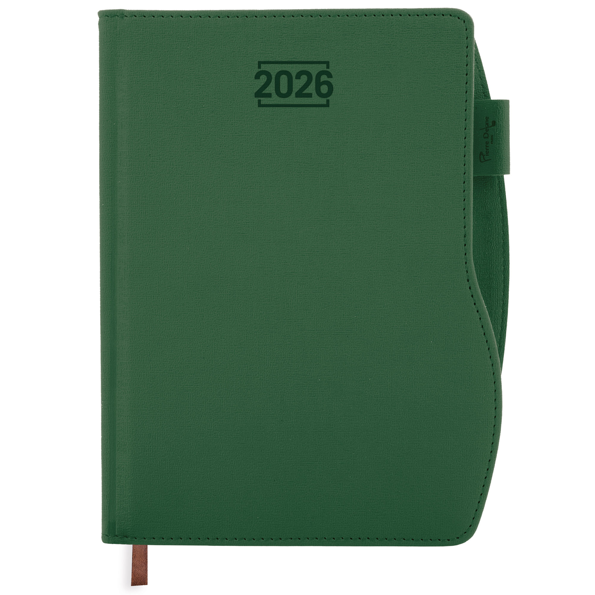 Agenda día página de originales cubiertas rígidas de polipiel, ideal para marcar en la técnica de termo grabado, dando un resultado excelente y de gran calidad.