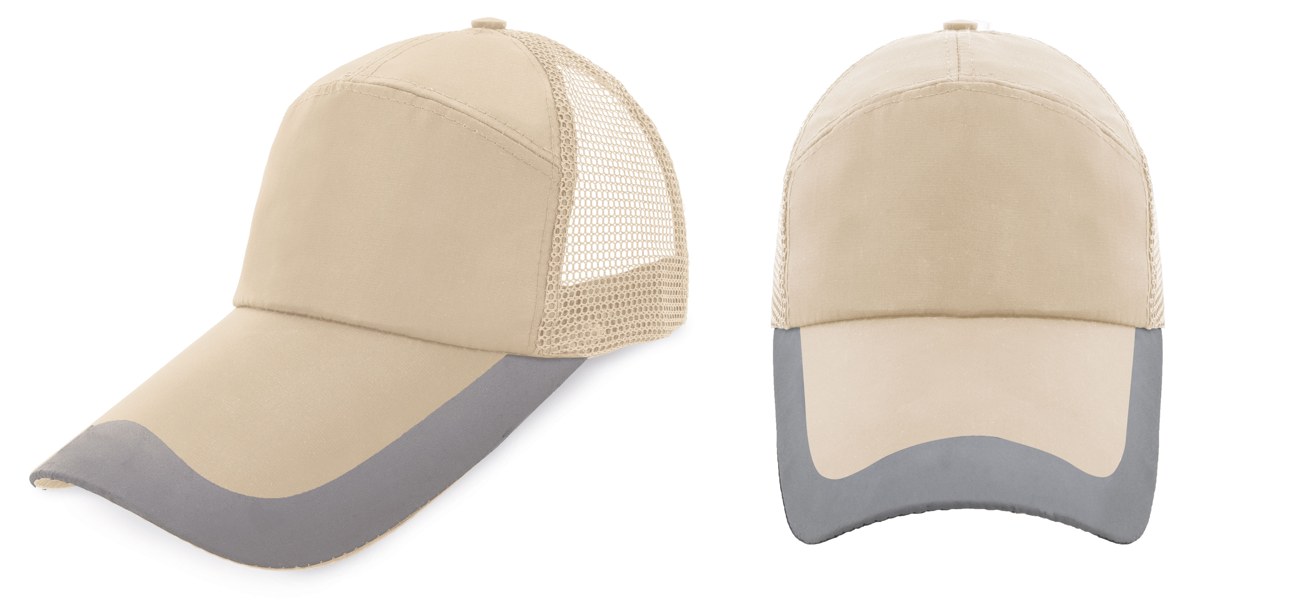 Fabricada en microfibra y malla. Diseño con tres paneles y cierre ajustable con hebilla metalizada.