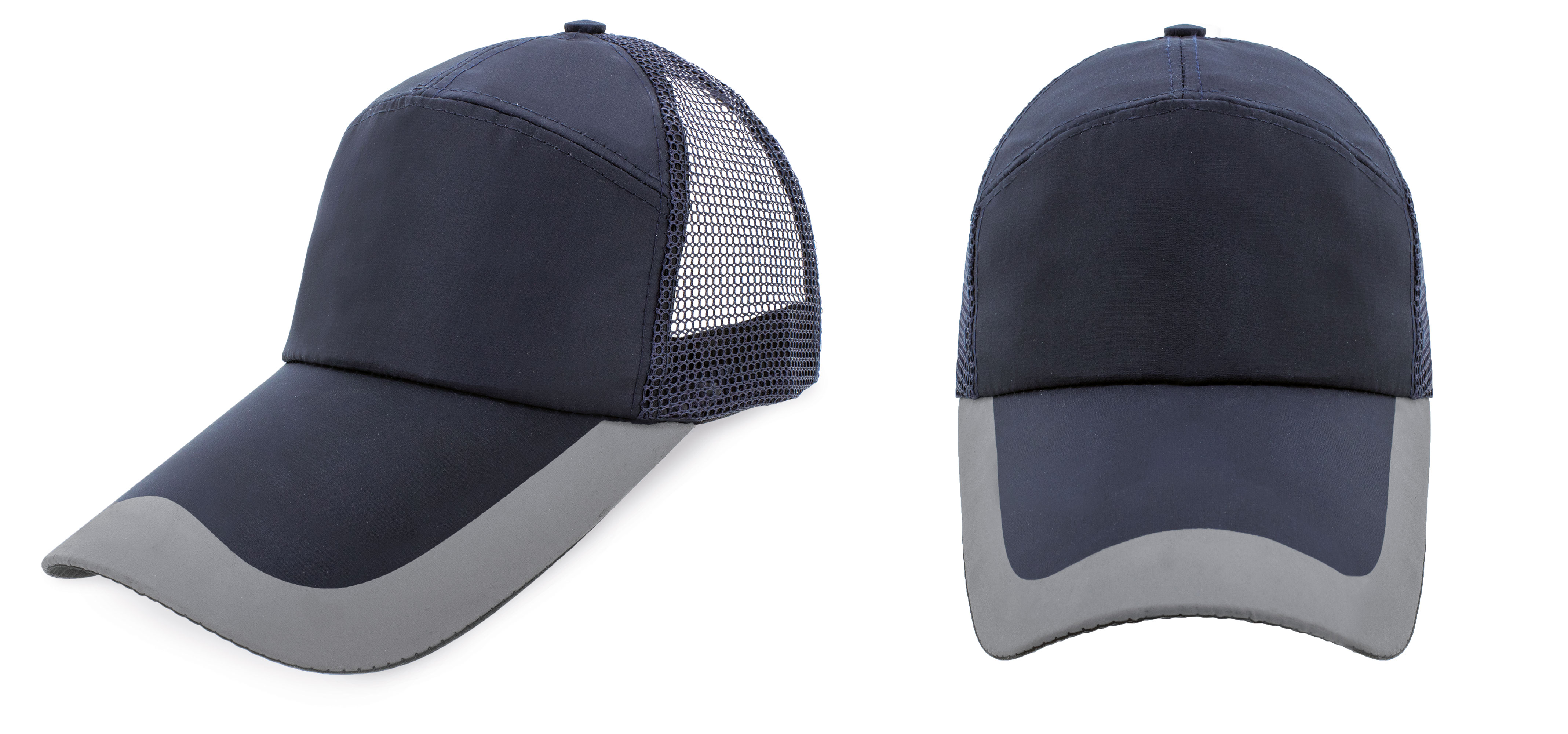 Fabricada en microfibra y malla. Diseño con tres paneles y cierre ajustable con hebilla metalizada.