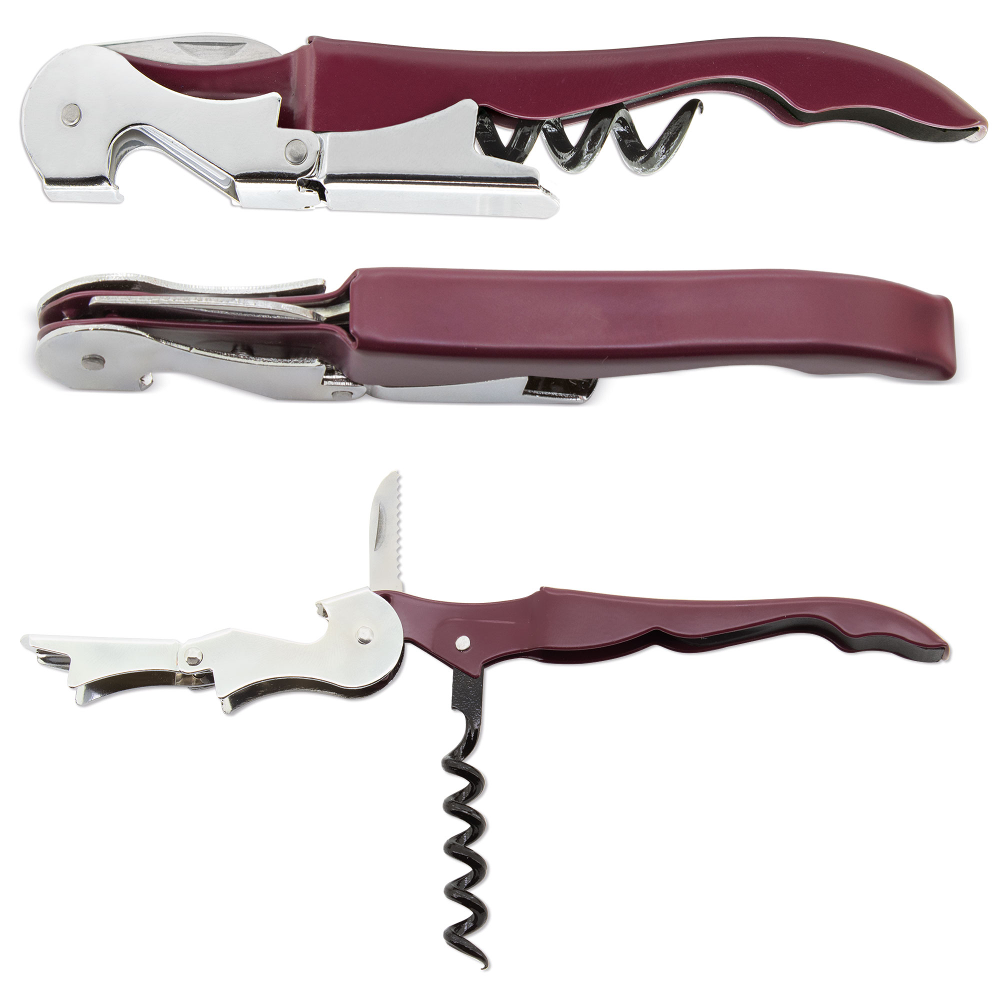 Incluye un práctico abrebotellas con mango ergonómico en color.