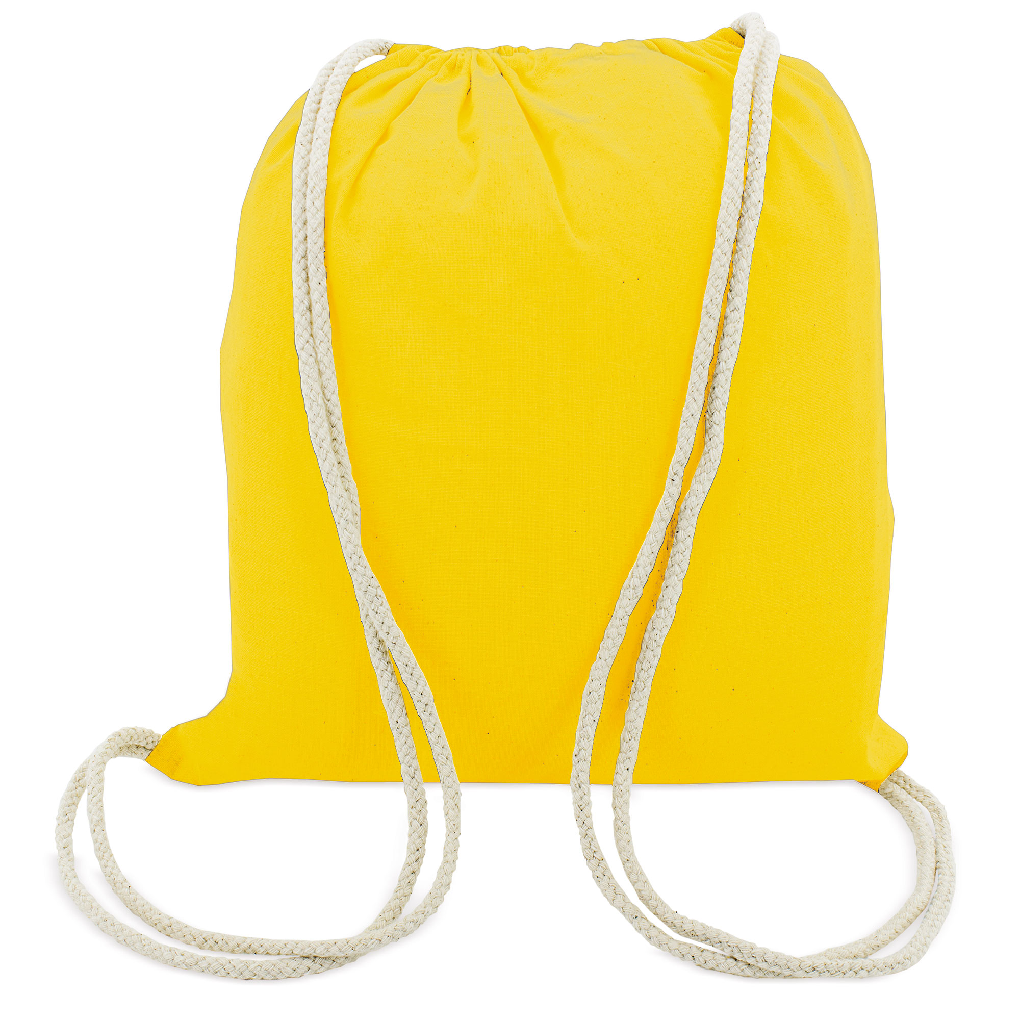 Bolsa 100% algodón tipo mochila con doble asa y cierre ajustable.