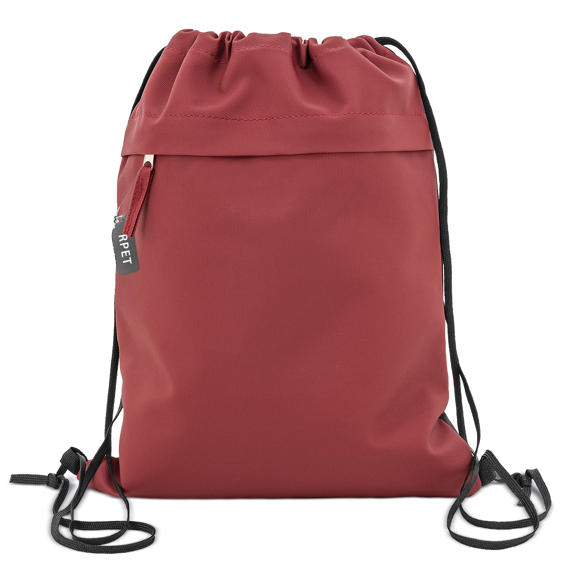 Bolsa tipo mochila con cordones de gran capacidad. Su diseño incluye un práctico bolsillo frontal con cremallera (medida 33x33 cm), ideal para pequeños objetos. Ligera, funcional y con gran área de marcaje; perfecta para eventos, promociones y uso diario.