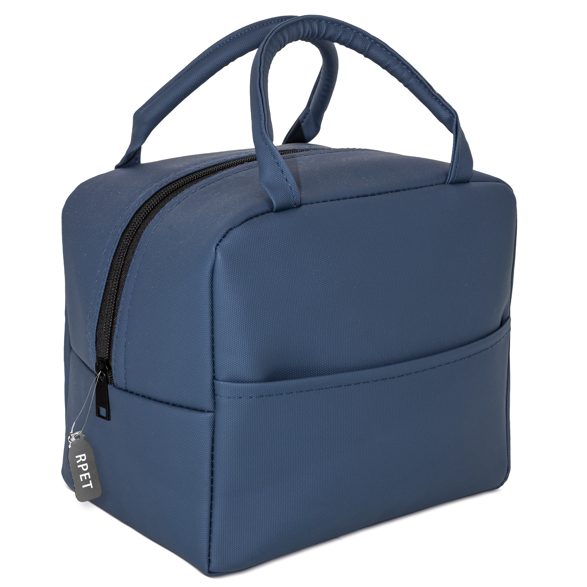 Bolsa nevera de gran capacidad, disponible en colores azul y gris.