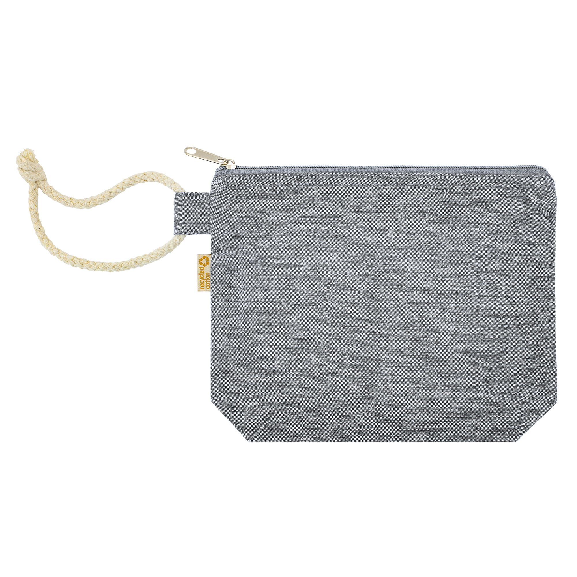 Neceser realizado en algodón reciclado en colores jaspeados y con un original cordón, disponible en cuatro colores