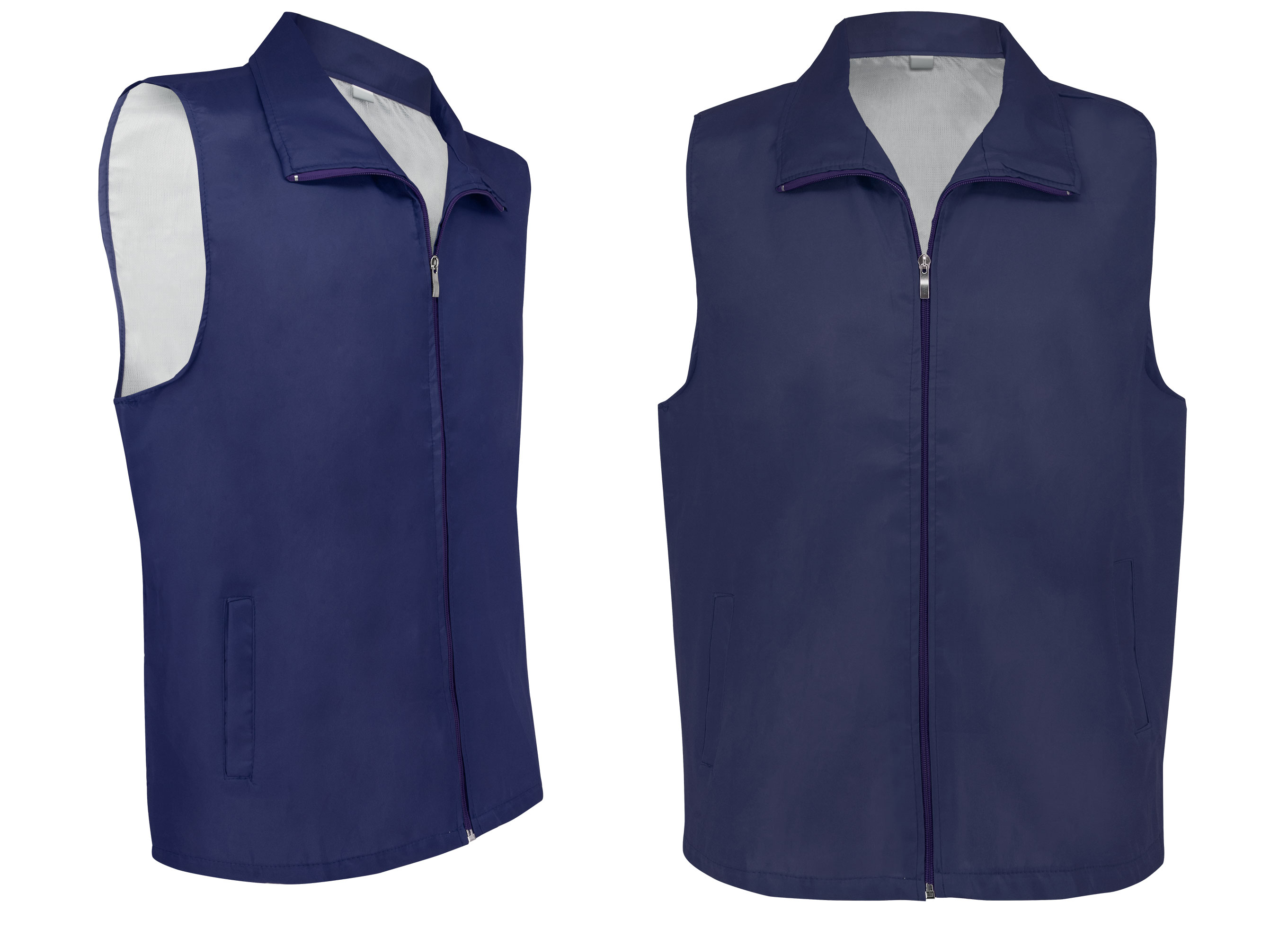 Realizado en poliéster, muy ligero y transpirable, se puede usar tanto en verano como en invierno. Incluye dos bolsillos exteriores y cierre de cremallera.