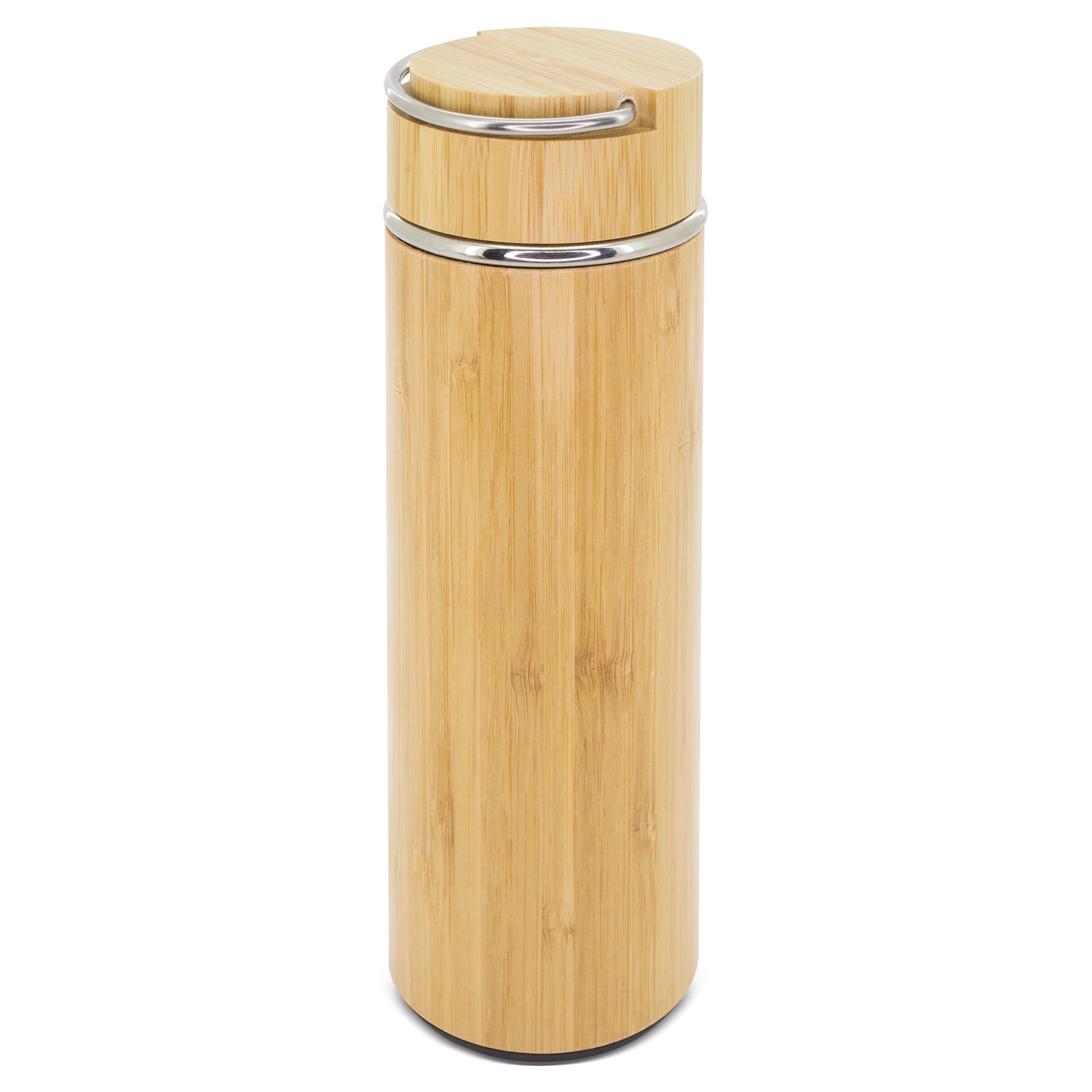 Realizado en bambú con doble cámara para mejor conservación, asa para transporte plegable e infusar.