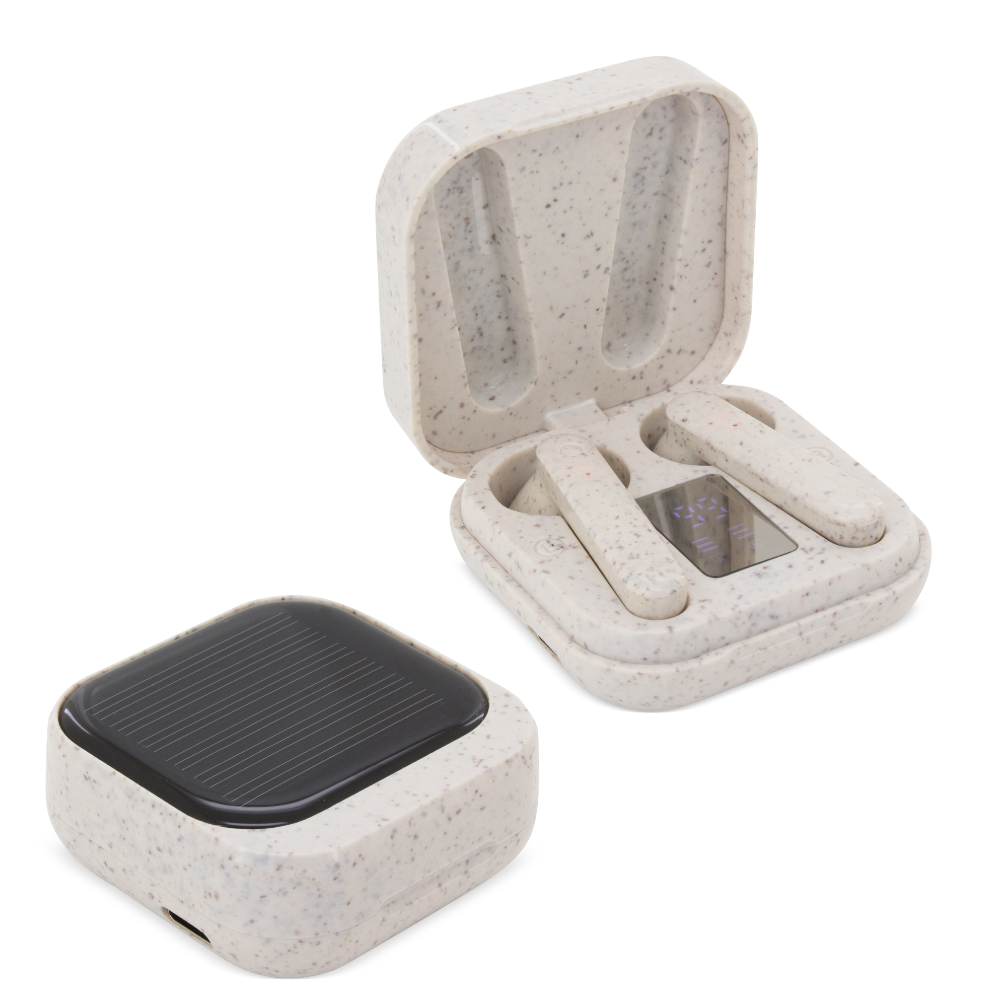 Auricular de carga solar, autonomía 2-3h aproximadamente, incluye cable de carga.