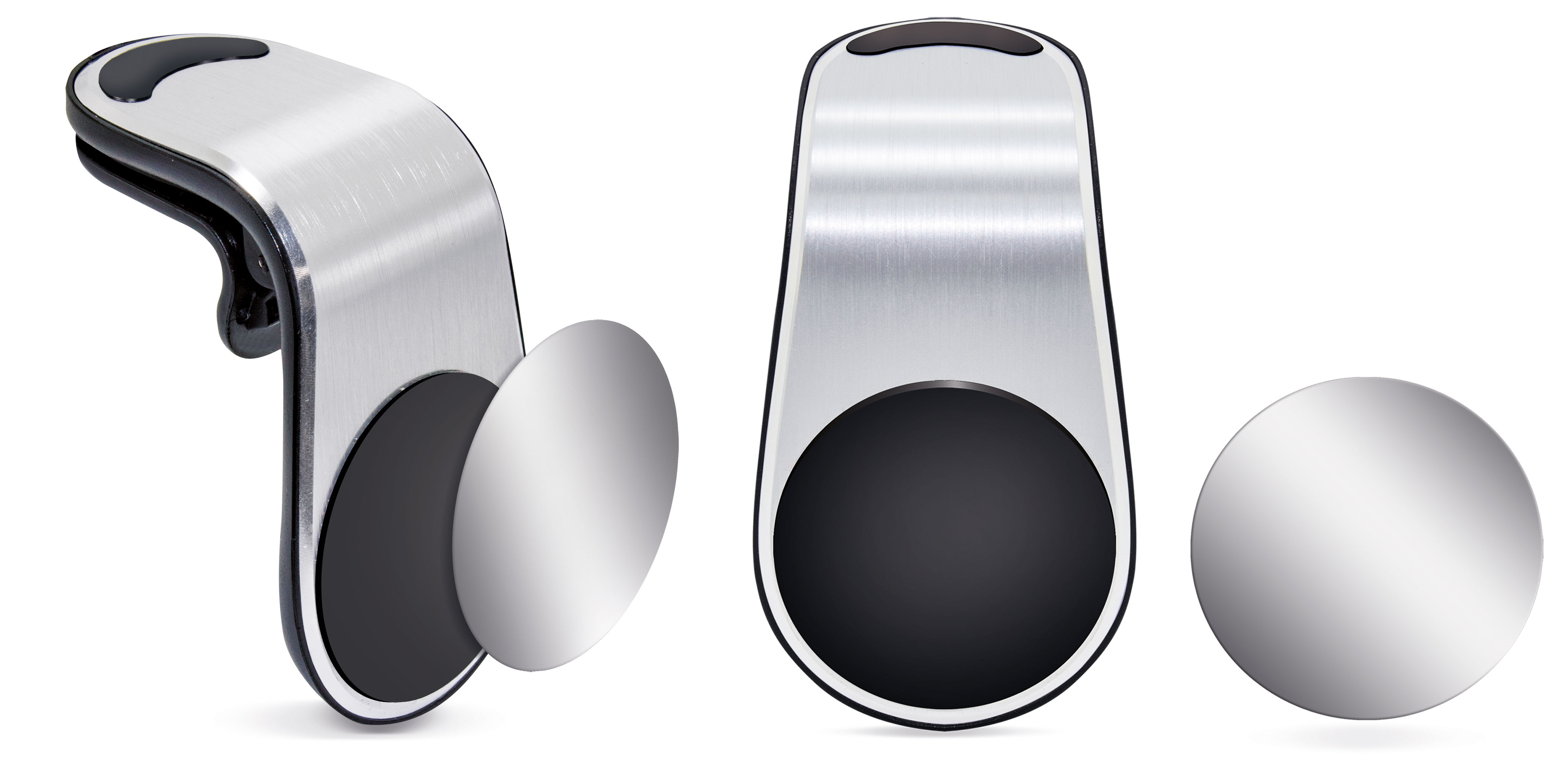 Su diseño alargado permite situar la pinza en la rejilla de ventilación haciendo que el teléfono quede en la parte inferior, por lo que no interfiere en la salida de aire del conducto.