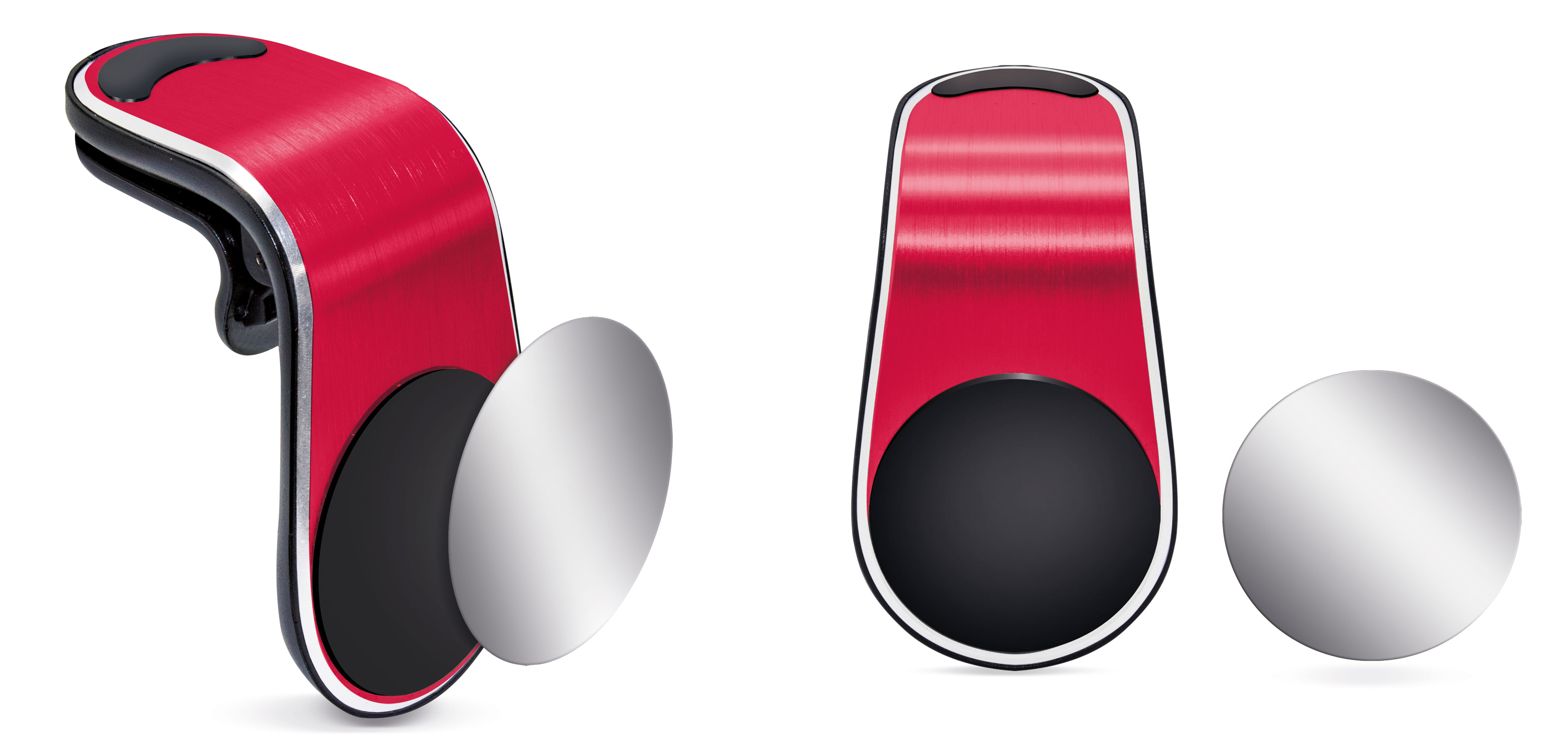 Su diseño alargado permite situar la pinza en la rejilla de ventilación haciendo que el teléfono quede en la parte inferior, por lo que no interfiere en la salida de aire del conducto.