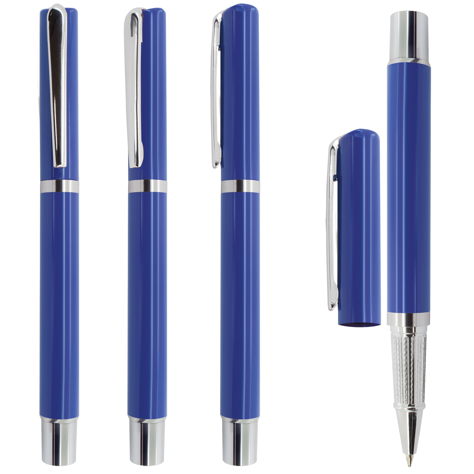 Elegante roller con terminaciones metalizadas y tinta de gel, imitando la escritura de una pluma clásica.