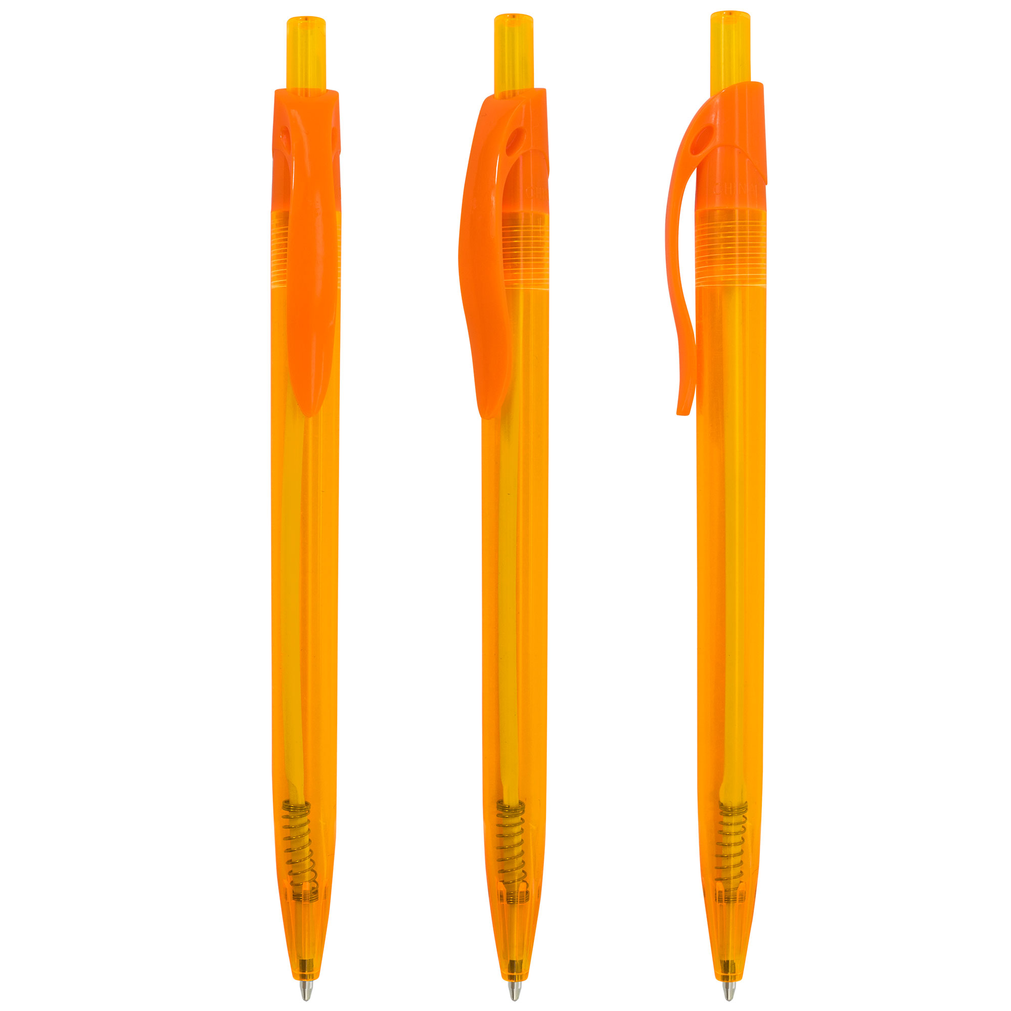 Bolígrafo transparente disponible en una amplia variedad de colores, escritura azul