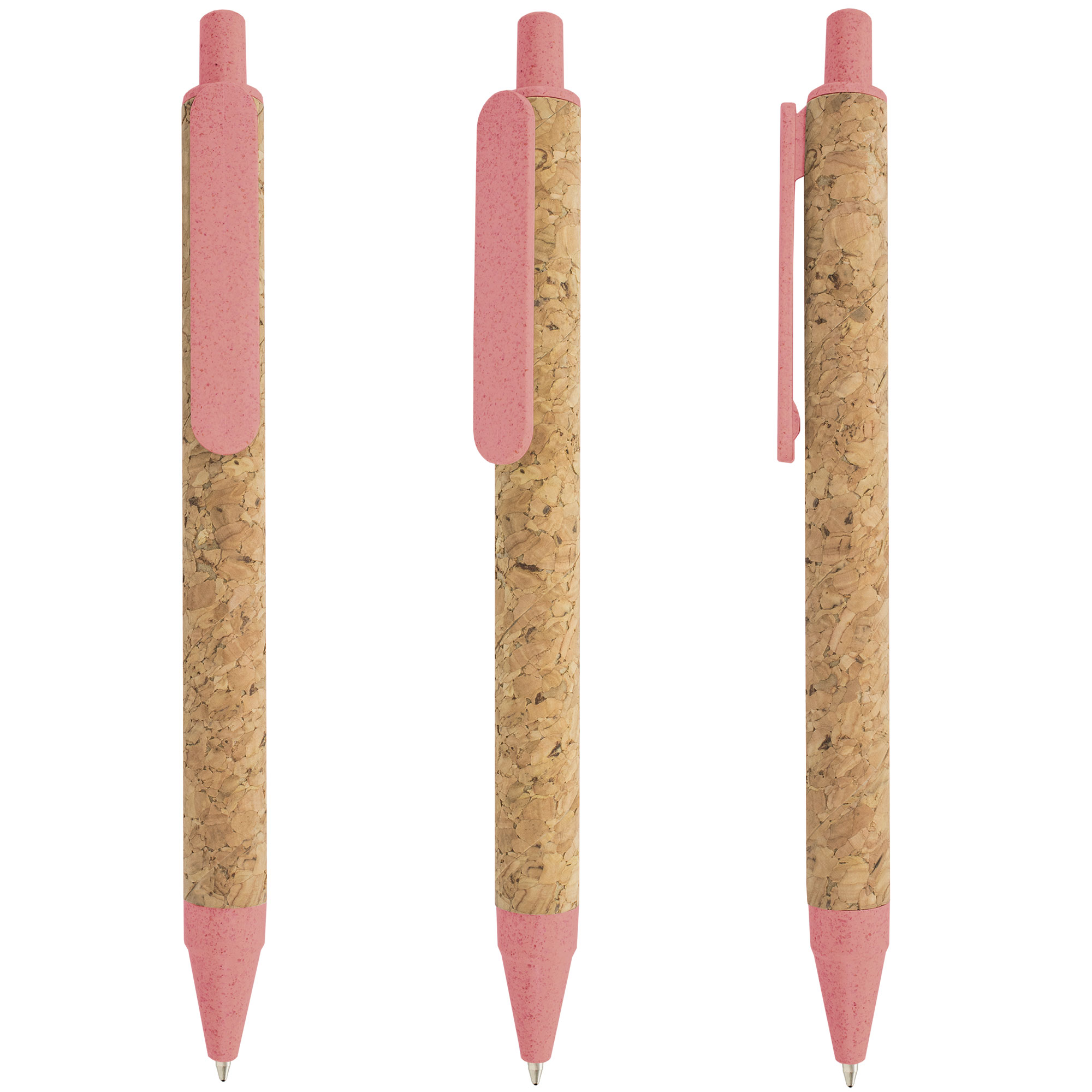 Boligrafos con fibra de trigo ecologicos y respetuosos con el medio ambiente el cuerpo esta realizado con corcho y las terminaciones en PP con fibra de trigo de colores calidos, escritura muy agradable en color azul que hace de este articulo un top ventas en productos ECO.