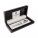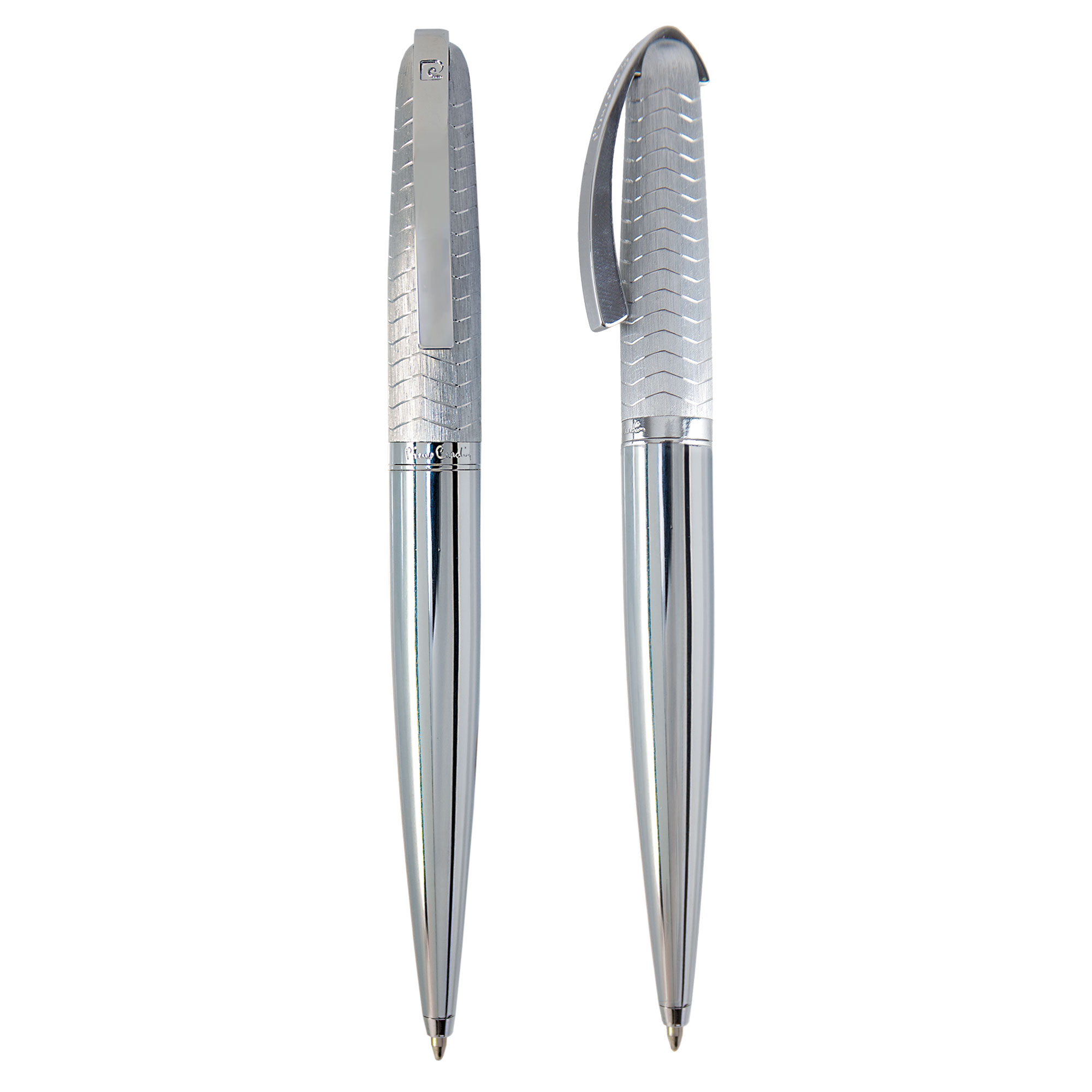 Bolígrafo metálico con cierre de mecanismo giratorio en metal mate texturizado con adornos de ondas.