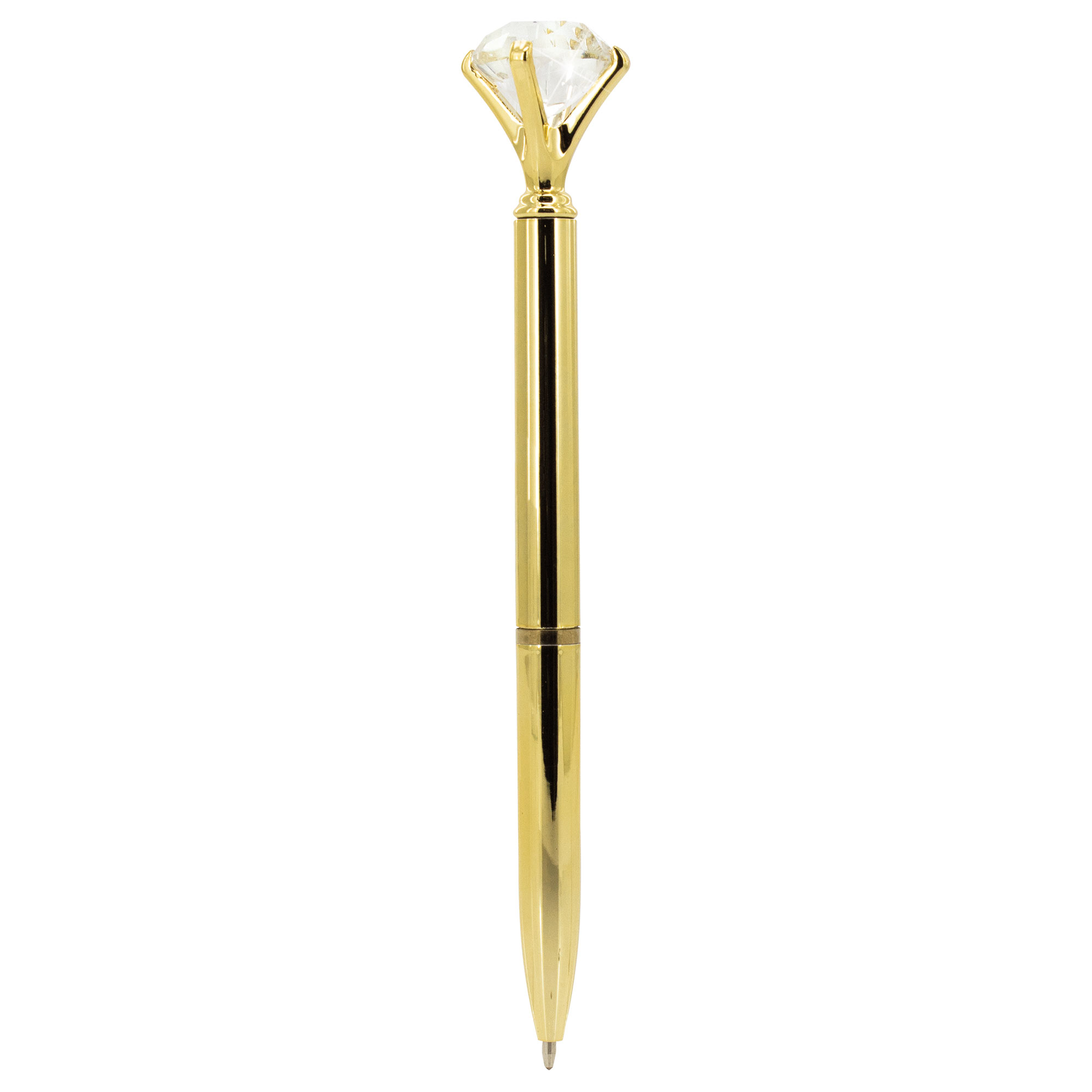 Llamativo y original bolígrafo de imitación al metal, con colores elegantes, dorado, plata y rosé.Su extremo está coronado con un detalle imitando a un gran diamante.