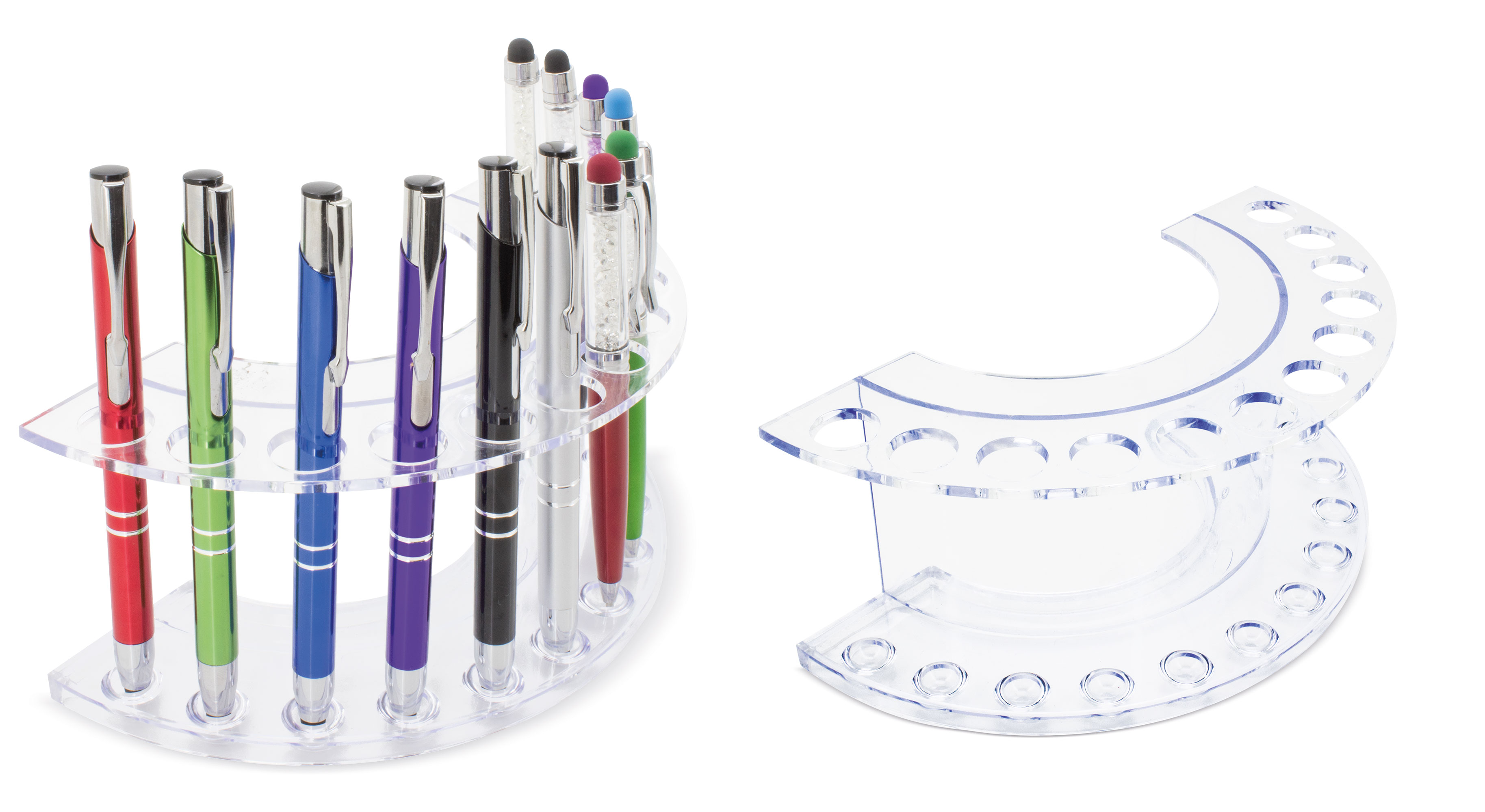 Ideales para ferias y exposiciones. Realizados en metacrilato con distintas capacidades para adaptarse a tus necesidades, estos expositores y sus originales diseños, harán que tus bolígrafos sean el centro de atención.