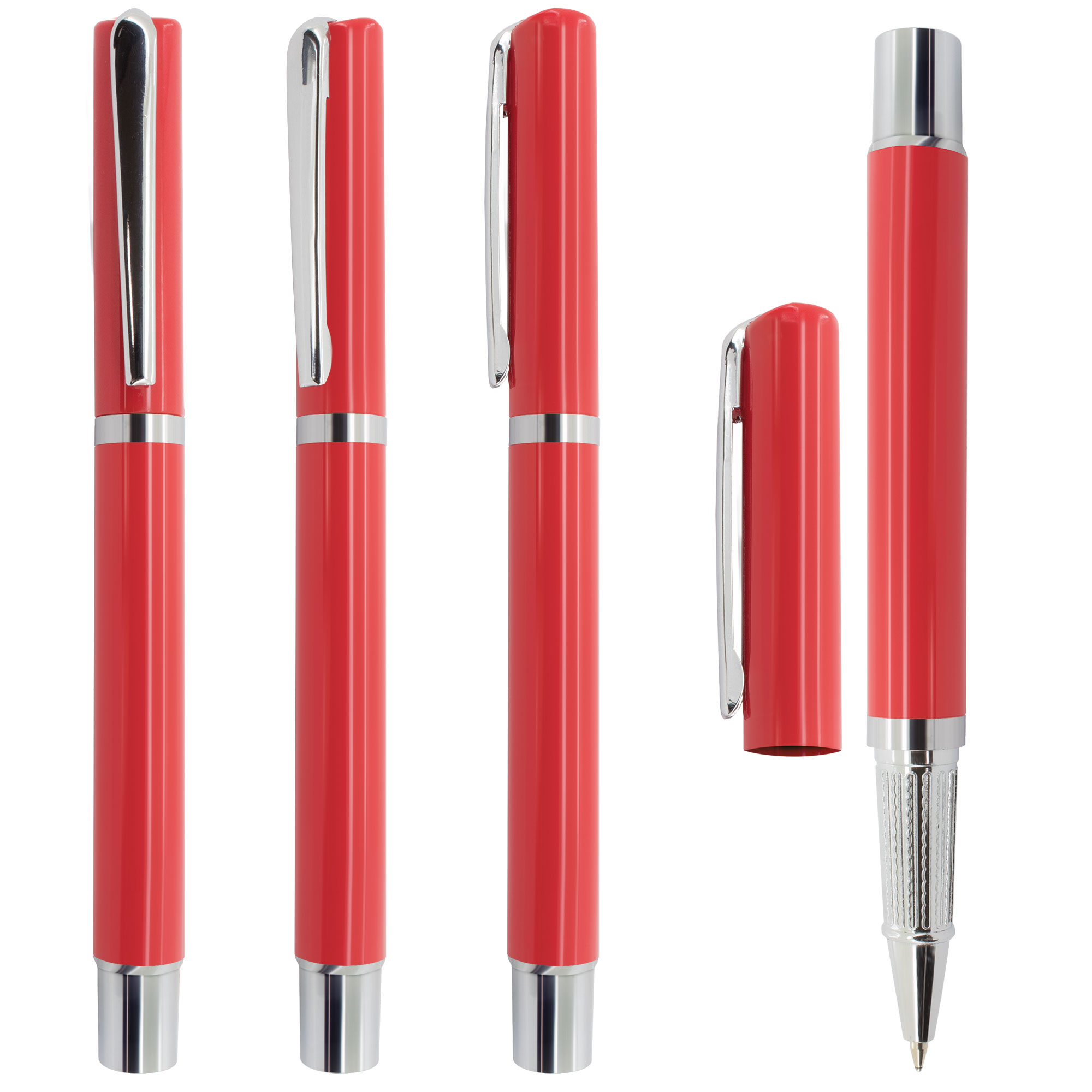 Elegante roller con terminaciones metalizadas y tinta de gel, imitando la escritura de una pluma clásica.