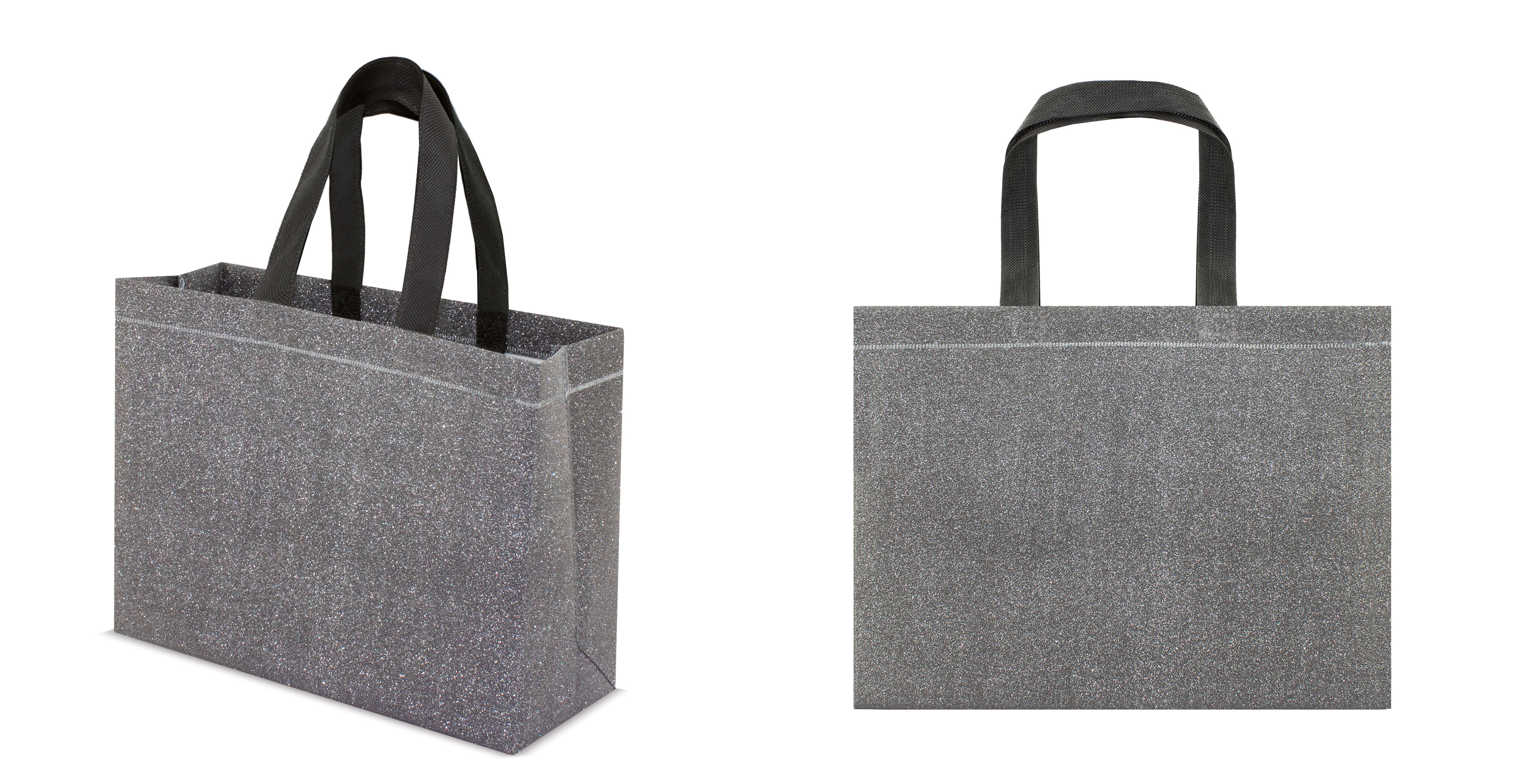Bolsa de Non Woven en acabado brillante efecto "glitter" (purpurina) prensado.