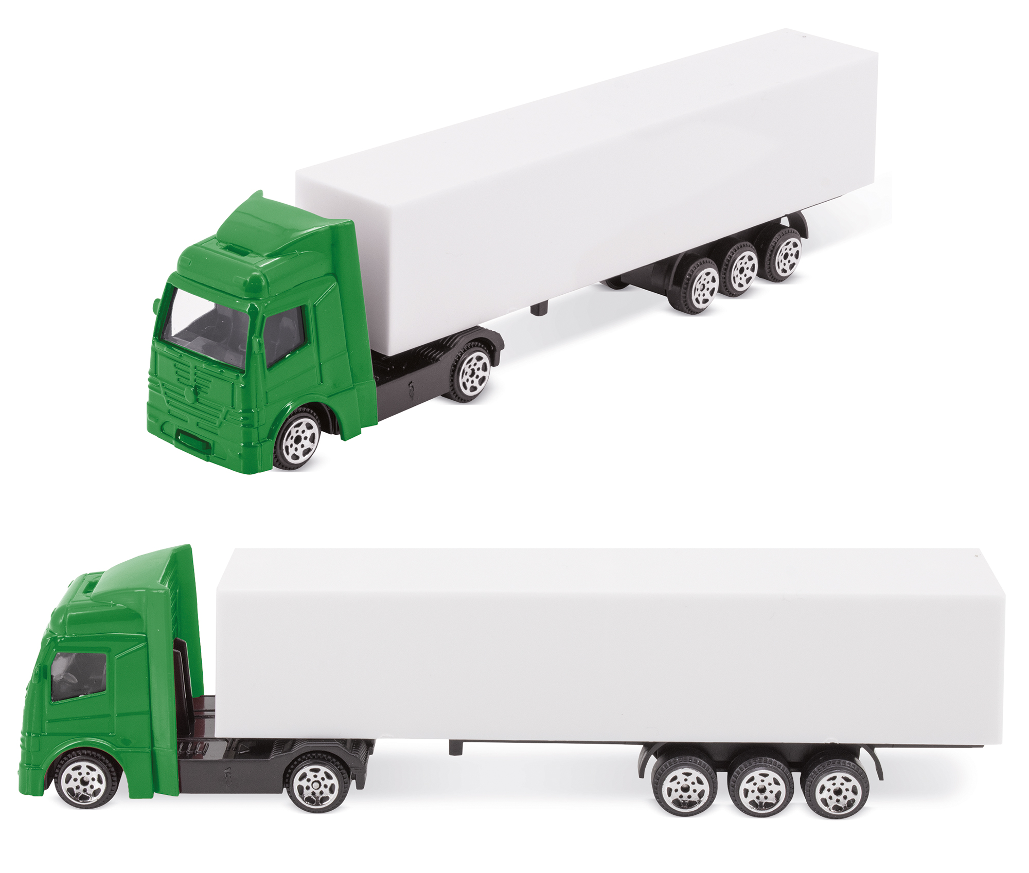 Camión en miniatura realizado en plástico y metal. Articulado.