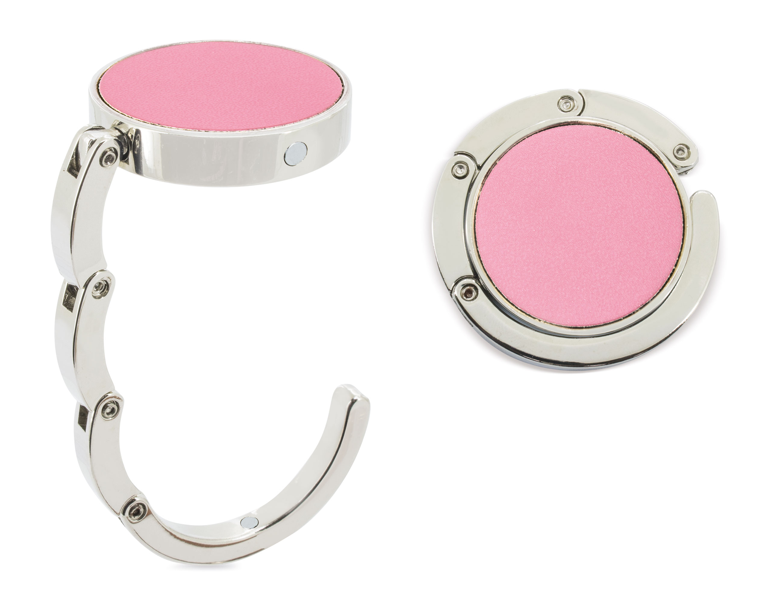Cuelgabolsos con acabado en PVC texturizado. Disponible en gran variedad de colores que se adaptan a cualquier tipo de evento. Tiene un imán para que quede perfectamente plegado. Incluye estuche presentación.