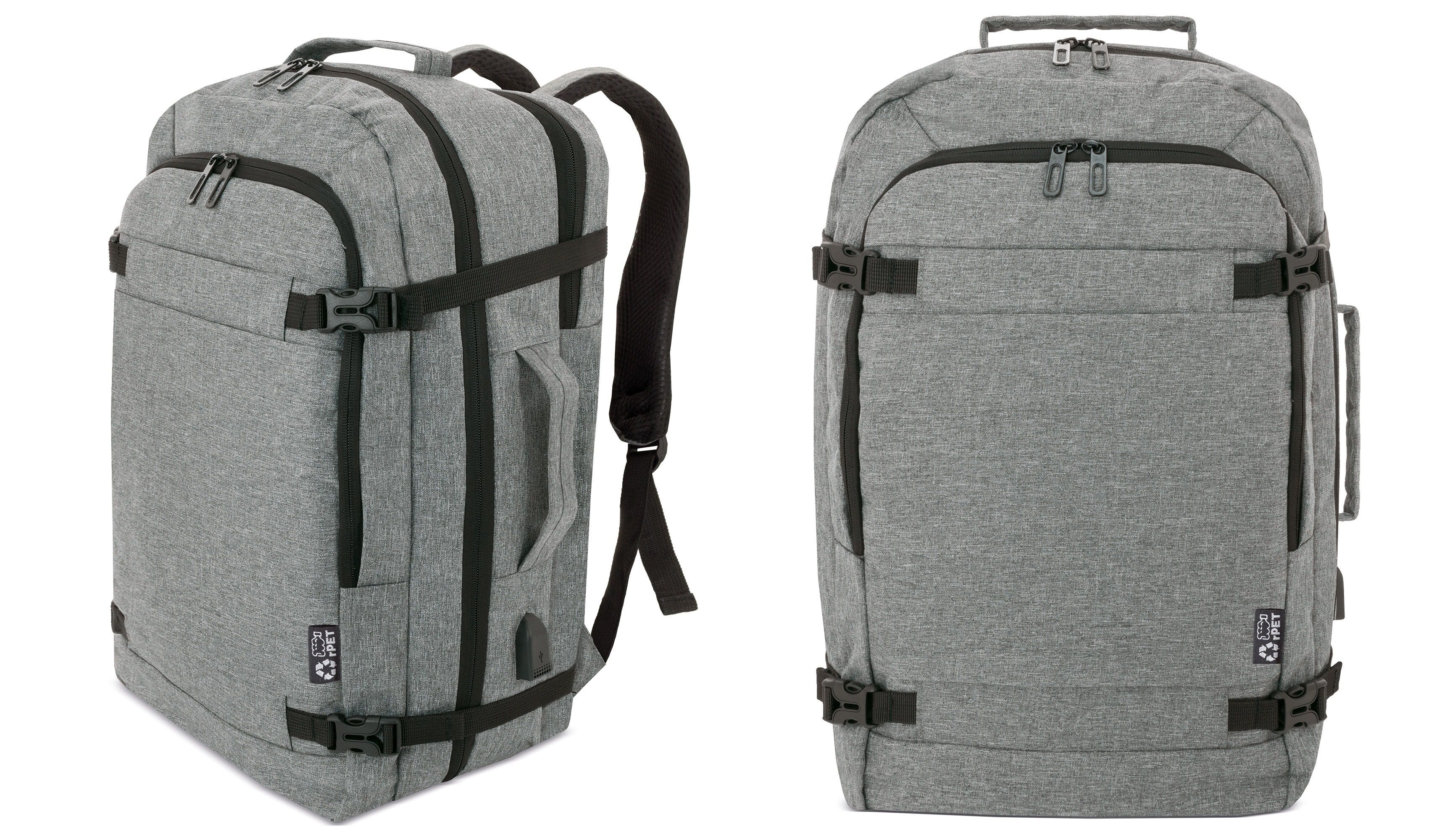 Cintas acolchadas y adaptables con sus cintas ajustables. Dispone además, de un bolsillo trasero antirrobo y un refuerzo dorsal para tu comodidad.
