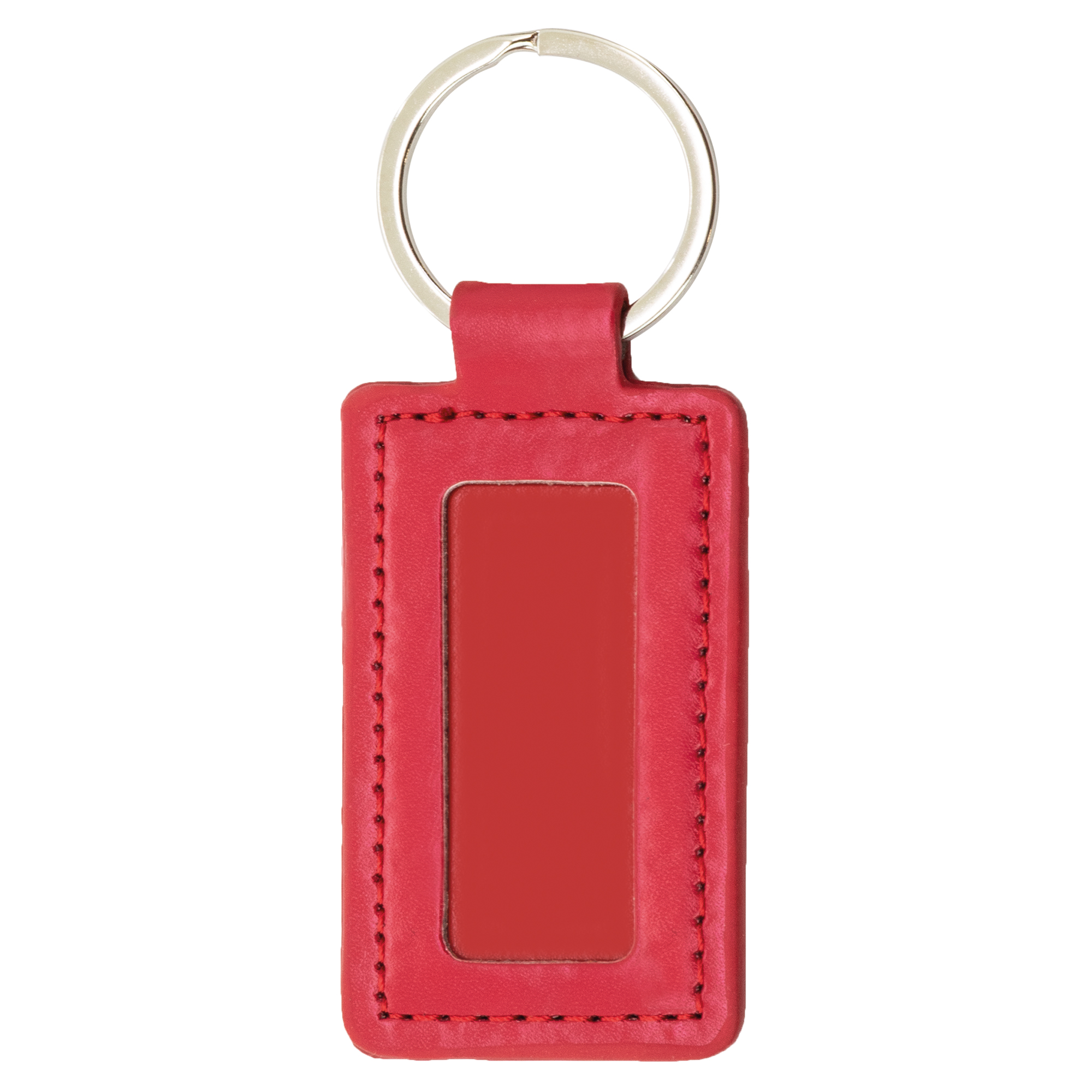 Llavero  de PU con acabado sofisticado y costuras reforzadas, disponible en forma rectangular (modelo 11015) o redonda (modelo 11068).